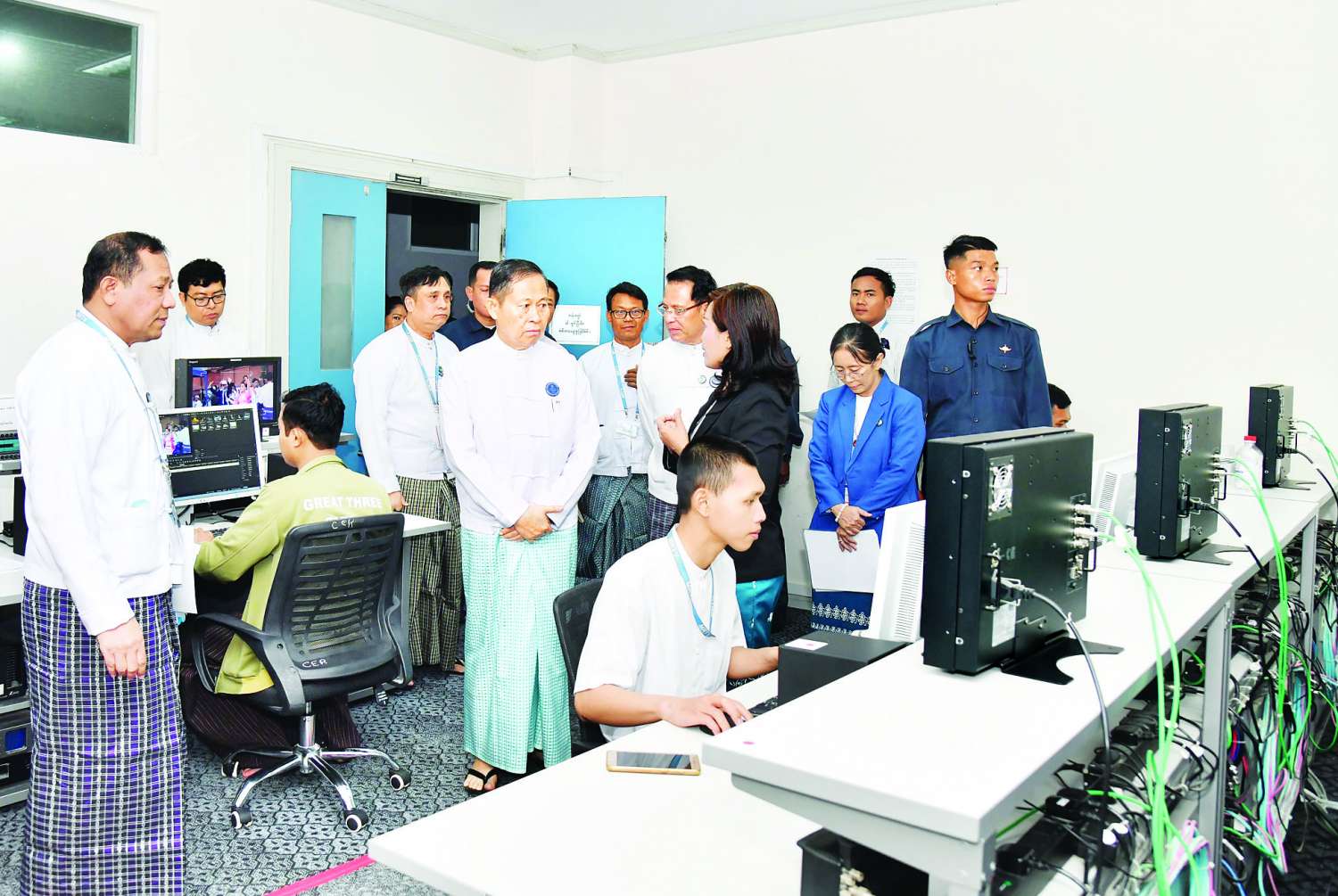 ယင်းနောက် နိုင်ငံတော်စီမံအုပ်ချုပ်ရေးကောင်စီ ဒုတိယဥက္ကဋ္ဌ ဒုတိယဝန်ကြီးချုပ်နှင့်အဖွဲ့ဝင်များသည် မြန်မာ့အသံနှင့် ရုပ်မြင်သံကြား၏ သတင်းစတူဒီယိုများ၊ ထုတ်လွှင့်ခန်းများ၊ Convergence News Room အခန်းများကို လေ့လာခြင်း၊ MSME Promo များအား မြန်မာနှင့်တိုင်းရင်းသားဘာသာများဖြင့် ရိုက်ကူးထုတ်လုပ်နေမှုများ၊ AI နည်းပညာဖြင့် ရုပ်သံထုတ်လွှင့်နိုင်ရန် လေ့လာစမ်းသပ်နေမှုများ၊ အသံသွင်း Studio တွင် “အရုပ်မျက်နှာပန်းမျက်နှာ” အသံသွင်း ဇာတ်လမ်းသရုပ်ပြ အသံသွင်းနေမှုများကို လိုက်လံကြည့်ရှုရာ ကဏ္ဍအလိုက်တာဝန်ရှိသူများ၏ ရှင်းလင်းတင်ပြကြမှုများအပေါ် လိုအပ်သည်များကို မှာကြား သည်။