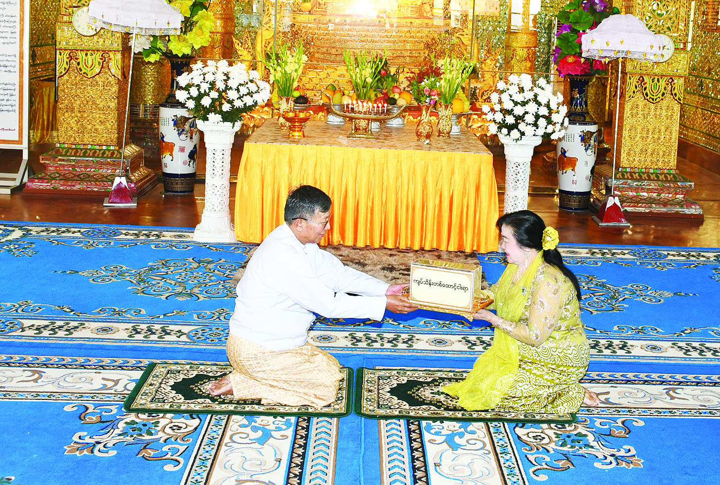 ရွှေတိဂုံစေတီတော် ဘဏ္ဍာတော်ထိန်း ဂေါပကအဖွဲ့ဝင်များနှင့် ရန်ကုန်တိုင်းဒေသကြီးအတွင်းရှိ ဘုရားစေတီများမှ ဂေါပကအဖွဲ့ဝင်များ တွေ့ဆုံညှိနှိုင်းအစည်းအဝေးကို ယနေ့နံနက်ပိုင်းတွင် ရွှေတိဂုံစေတီတော်တောင်ဘက်မုခ်ရှိ ရှေးဟောင်းဗုဒ္ဓရုပ်ပွားတော်များတန်ဆောင်း၌ ကျင်းပရာ သာသနာရေး နှင့် ယဉ်ကျေးမှုဝန်ကြီးဌာန ပြည်ထောင်စုဝန်ကြီးဦးတင်ဦးလွင် တက်ရောက်သည်။