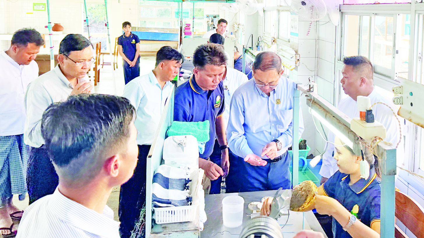 မွန်းလွဲပိုင်းတွင် ကော့သောင်းမြို့နယ် ဂျလန်းကျွန်းရှိ အရှေ့တိုင်း ပုလဲကုမ္ပဏီနှင့် စိန့်လုခ်ကျွန်းရှိ မြန်မာအန်ဒါမန်ပါးလ်ကုမ္ပဏီသို့သွားရောက်၍ မုတ်ကောင်သားဖောက်မွေးမြူမှုနှင့် ဝတ်ဆံသွင်းဆောင်ရွက်နေမှုအခြေအနေများကို ကြည့်ရှုစစ်ဆေးပြီး တာဝန်ရှိသူများ၏ ရှင်းလင်းတင်ပြမှုများအပေါ် ပြည်ထောင်စုဝန်ကြီးက ပုလဲထုတ်လုပ်မှု တိုးတက်လာစေရေးအတွက် မုတ်ကောင်သားဖောက်ခြင်းမှ ပုလဲဖော်ခြင်းအထိ လုပ်ငန်းစဉ်အလိုက် အထူးအလေးထား ဆောင်ရွက်သွားရန်နှင့် မုတ်ကောင်သားဖောက်ရှင်သန်မှုမြင့်မားစေရေး၊ ဝတ်ဆံမြဲမုတ်ကောင်ရာခိုင်နှုန်း တိုးတက်လာစေရေး၊ ဖော်ယူရရှိသောပုလဲများ၏ အရည်အသွေးမြင့်မားစေရေးအတွက် ကြိုးပမ်းဆောင်ရွက်သွားကြရန် မှာကြားခဲ့ကြောင်း သိရသည်။