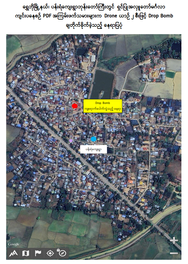 ယနေ့တွင်လည်း PDF အမည်ခံအကြမ်းဖက်သမားများက စစ်ကိုင်းတိုင်းဒေသကြီး၊ ရွှေဘိုမြို့နယ်၊ ပန်းရံကျေးရွာဘုန်းတော်ကြီးကျောင်းတွင် ရှင်ပြုအလှူတော်မင်္ဂလာကျင်းပနေချိန်၌ ကျေးရွာ၏ အရှေ့မြောက်ဘက်မှ Drone ယာဉ် ၂ စီးဖြင့် Drop Bomb ချတိုက်ခိုက်မှုကြောင့် ကျောင်းအတွင်းရှိ ဓမ္မာရုံပေါ်သို့ ကျရောက်ပေါက်ကွဲခဲ့သဖြင့် အသက် (၉) နှစ်အရွယ် ကလေးငယ်တစ်ဦး သေဆုံးခဲ့ပြီး အပြစ်မဲ့ပြည်သူ ၁၄ ဦး ထိခိုက်ဒဏ်ရာများ ရရှိခဲ့သည်။