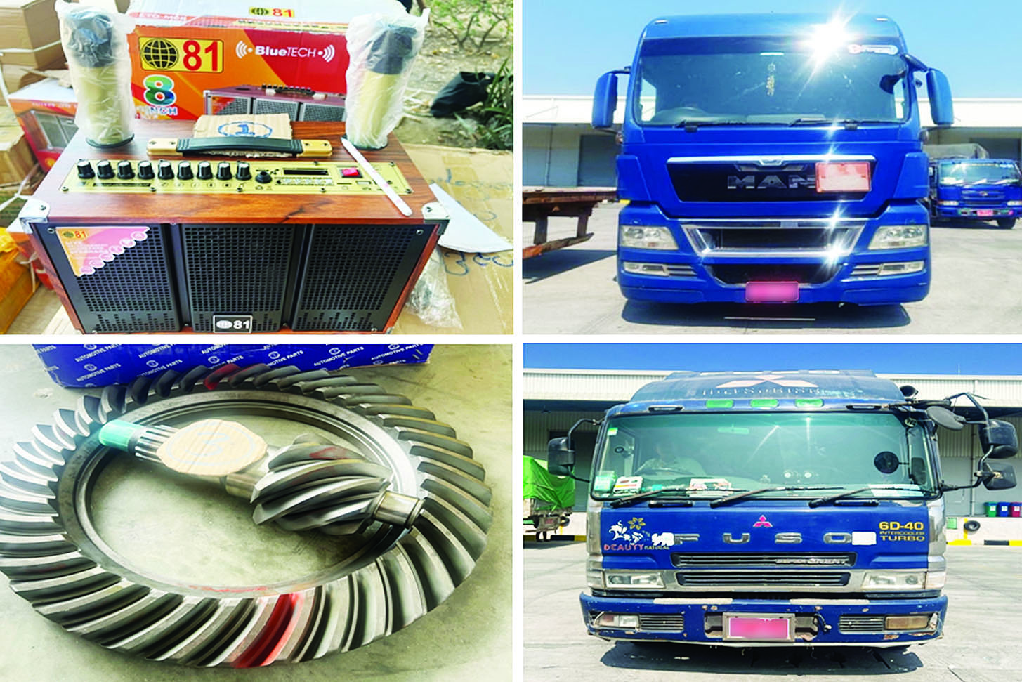 တရားမဝင်သစ်မျိုးစုံ၊ စက်သုံးဆီများ၊ လုပ်ငန်းသုံးပစ္စည်းများ၊ လူသုံးကုန်ပစ္စည်းများ၊ လိုင်စင်မဲ့မော်တော်ဆိုင်ကယ်များနှင့် မော်တော်ယာဉ်များဖမ်းဆီးရမိ