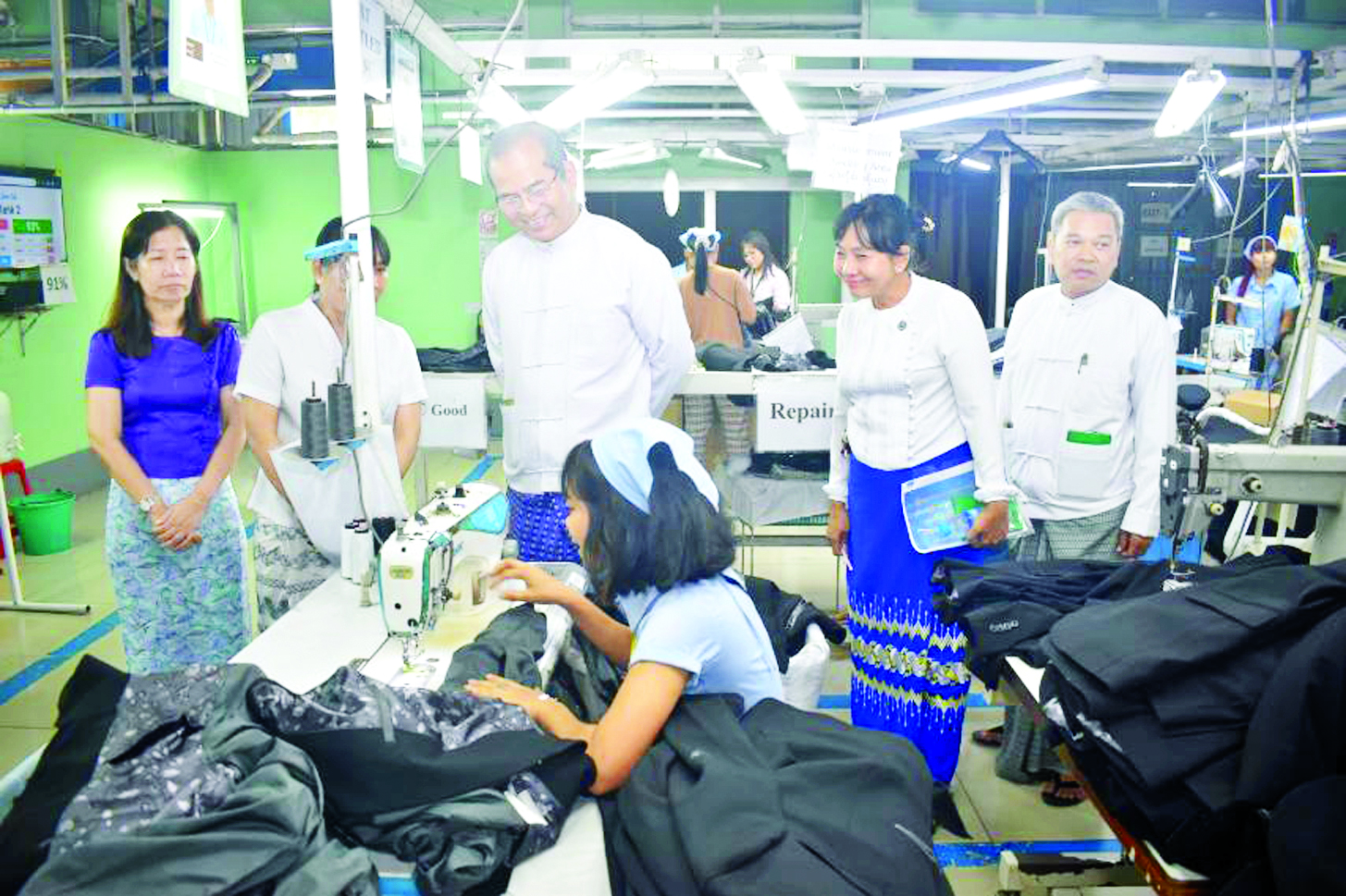 အလုပ်သမားဝန်ကြီးဌာန ဒုတိယဝန်ကြီး ဦးဝင်းရှိန်သည် ယနေ့နံနက်ပိုင်းတွင် လှိုင်သာယာမြို့နယ် ရွှေလင်ပန်းစက်မှုဇုန်ရှိ အထည်ချုပ်စက်ရုံများဖြစ်သည့် Handa Yangon Garment Co ., Ltd.၊ Sinoproud Myanmar Garment Co ., Ltd. နှင့် Tianjin Fashion Milestone Co .,Ltd. များမှ အလုပ်ရှင်၊ မန်နေဂျာ၊ အခြေခံအလုပ်သမားအဖွဲ့အစည်း ဝင်များနှင့်တွေ့ဆုံ၍ စက်ရုံ၊ အလုပ်ရုံများ ပုံမှန်လည်ပတ်နိုင်ရေး၊ လုပ်ငန်းခွင်တည်ငြိမ်အေးချမ်းရေး၊ ကုန်ထုတ်စွမ်းအားတိုးတက်ရေး၊ လုပ်ငန်းခွင်ဘေးအန္တရာယ်ကင်းရှင်းရေးနှင့် ကျန်းမာရေး၊ အလုပ်သမား အဖွဲ့အစည်းဝင်များနှင့် အလုပ်ရှင်များ ပူးပေါင်းဆောင်ရွက်ရေး၊ လူမှုဖူလုံရေး အကျိုးခံစားခွင့်များ ရရှိခံစားနိုင်ရေးတို့ကို တွေ့ဆုံမှာကြားသည်။