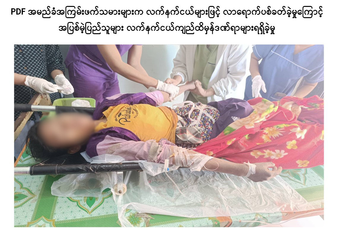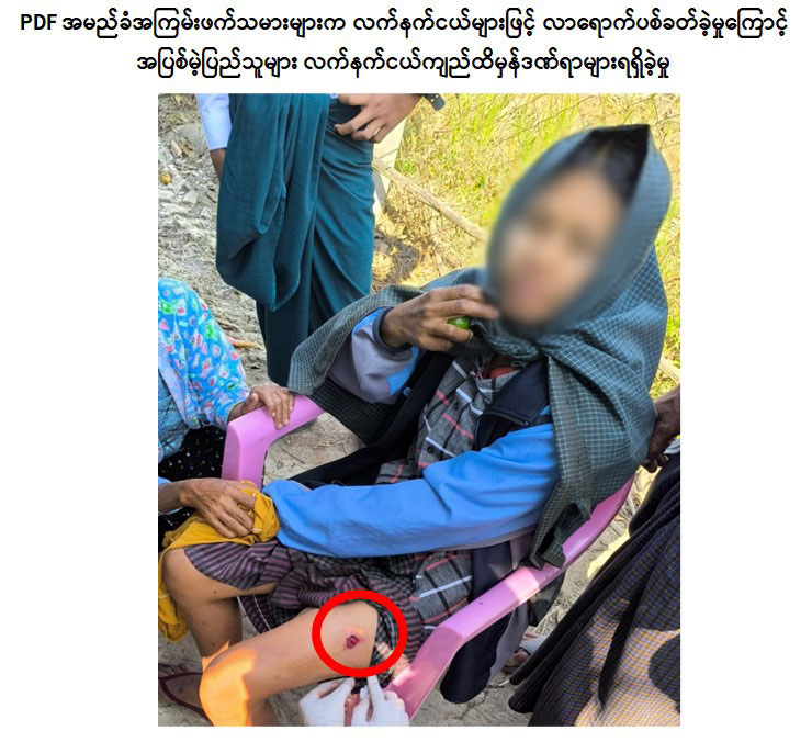 စစ်ကိုင်းတိုင်းဒေသကြီး၊ ရွှေဘိုမြို့နယ်၊ ခွန်တောင်းကြီးကျေးရွာအနီး လယ်လုပ်ငန်းဆောင်ရွက်နေသည့် ဒေသခံပြည်သူများအား PDF အမည်ခံ အကြမ်းဖက်သမားများက လက်နက်ငယ်များဖြင့် အကြောင်းမဲ့လာရောက်ပစ်ခတ်ခဲ့မှုကြောင့် အပြစ်မဲ့အရပ်သားပြည်သူအမျိုးသမီး ၃ ဦးလက်နက်ငယ်ကျည်ထိမှန်ဒဏ်ရာများ ရရှိခဲ့ကြောင်း သိရှိရသည်။