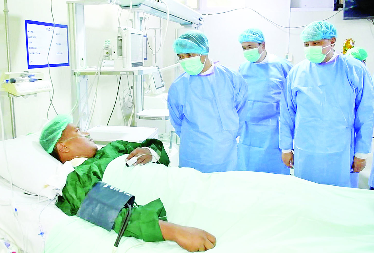 အဆိုပါကျောက်ကပ်အစားထိုး ခွဲစိတ်ကုသမှုကို ပါမောက္ခ ဒေါက်တာ ကိုကိုနိုင်နှင့် ပါမောက္ခ ဒေါက်တာဝင်းဝင်းလှိုင်တို့ ဦးဆောင်သော ဆီးနှင့်ကျောက်ကပ် ဆေးကုသမှုဆိုင်ရာလုပ်ငန်းအဖွဲ့၊ ပါမောက္ခဒေါက်တာလမင်းဝင်းနှင့် ပါမောက္ခ ဒေါက်တာကျော်စိုးကျော်တို့ဦးဆောင်သော ဆီးနှင့် ကျောက်ကပ်ခွဲစိတ်မှုဆိုင်ရာလုပ်ငန်းအဖွဲ့၊ ပါမောက္ခဒေါက်တာ ဝင်းဝင်းကျော်နှင့် အထူးကု ဆရာဝန်ကြီး ဒေါက်တာသတိုးသိန်းဇံတို့ဦးဆောင်သော နှလုံးနှင့်သွေးကြောခွဲစိတ်မှုဆိုင်ရာ လုပ်ငန်းအဖွဲ့၊ ပါမောက္ခ ဒေါက်တာ မီမီသော်နှင့် ပါမောက္ခဒေါက်တာမူမူနိုင်တို့ဦးဆောင်သော မေ့ဆေးပညာဆိုင်ရာလုပ်ငန်းအဖွဲ့၊ ဆေးတက္ကသိုလ် - မန္တလေး ပါမောက္ခချုပ် ပါမောက္ခဒေါက်တာ မျိုးသက်တင်နှင့် ပါမောက္ခ ဒေါက်တာ နီလာဝင်းတို့ဦးဆောင်သော ရောဂါရှာဖွေရေးနှင့် သွေးနှင့်သွေးပစ္စည်းဆိုင်ရာ အထောက်အကူပြုလုပ်ငန်းအဖွဲ့၊ ပါမောက္ခ ဒေါက်တာသန္တာလွင် ဦးဆောင်သော ဓာတ်မှန်ပညာဆိုင်ရာလုပ်ငန်းအဖွဲ့၊ ဆေးရုံအုပ်ကြီး ဒေါက်တာဆန်းလွင်ဦးနှင့် ဆေးရုံစီမံခန့်ခွဲမှုအဖွဲ့ဝင်များ၊ သူနာပြုများအဖွဲ့၊ ကျွမ်းကျင်ဝန်ထမ်းများနှင့် အထောက်အကူပြု ဝန်ထမ်းများအားလုံး ပူးပေါင်းဆောင်ရွက်ခဲ့ကြခြင်းဖြစ်သည်။
