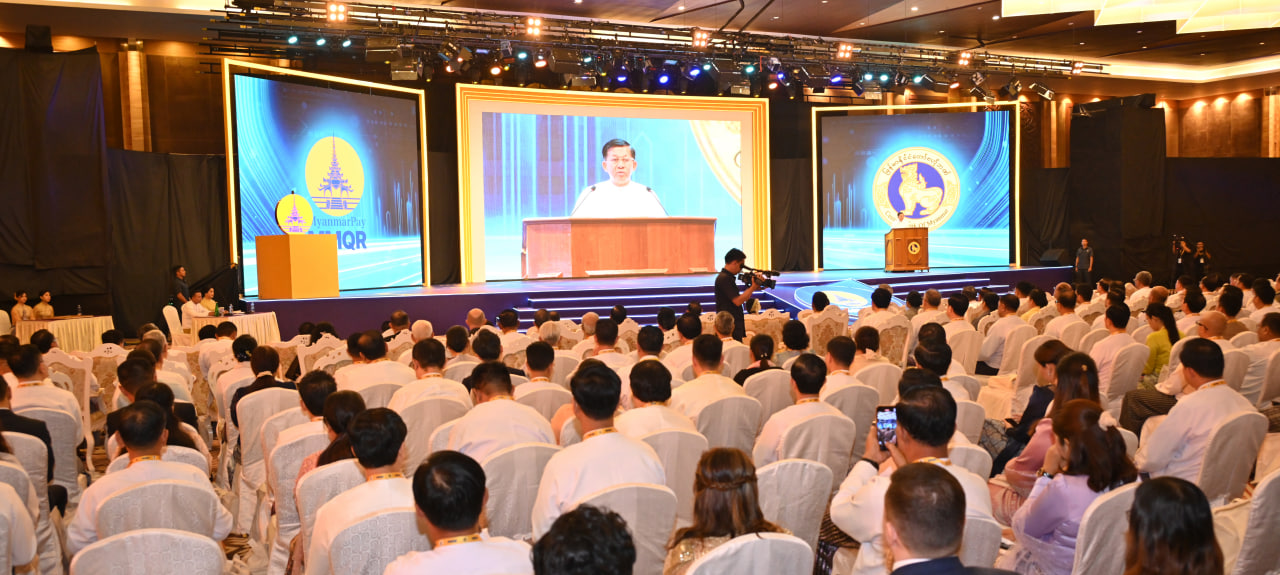 ဦးစွာ နိုင်ငံတော်စီမံအုပ်ချုပ်ရေးကောင်စီဥက္ကဋ္ဌ နိုင်ငံတော်ဝန်ကြီးချုပ်က မြန်မာနိုင်ငံ၏ ဒီဂျစ်တယ်ငွေပေးချေမှုအတွက် National QR Standard ဖြစ်သည့် MMQR စတင်အသုံးပြုခြင်းအခမ်းအနားကို စက်ခလုတ်နှိပ်၍ ဖွင့်လှစ်ပေးသည်။