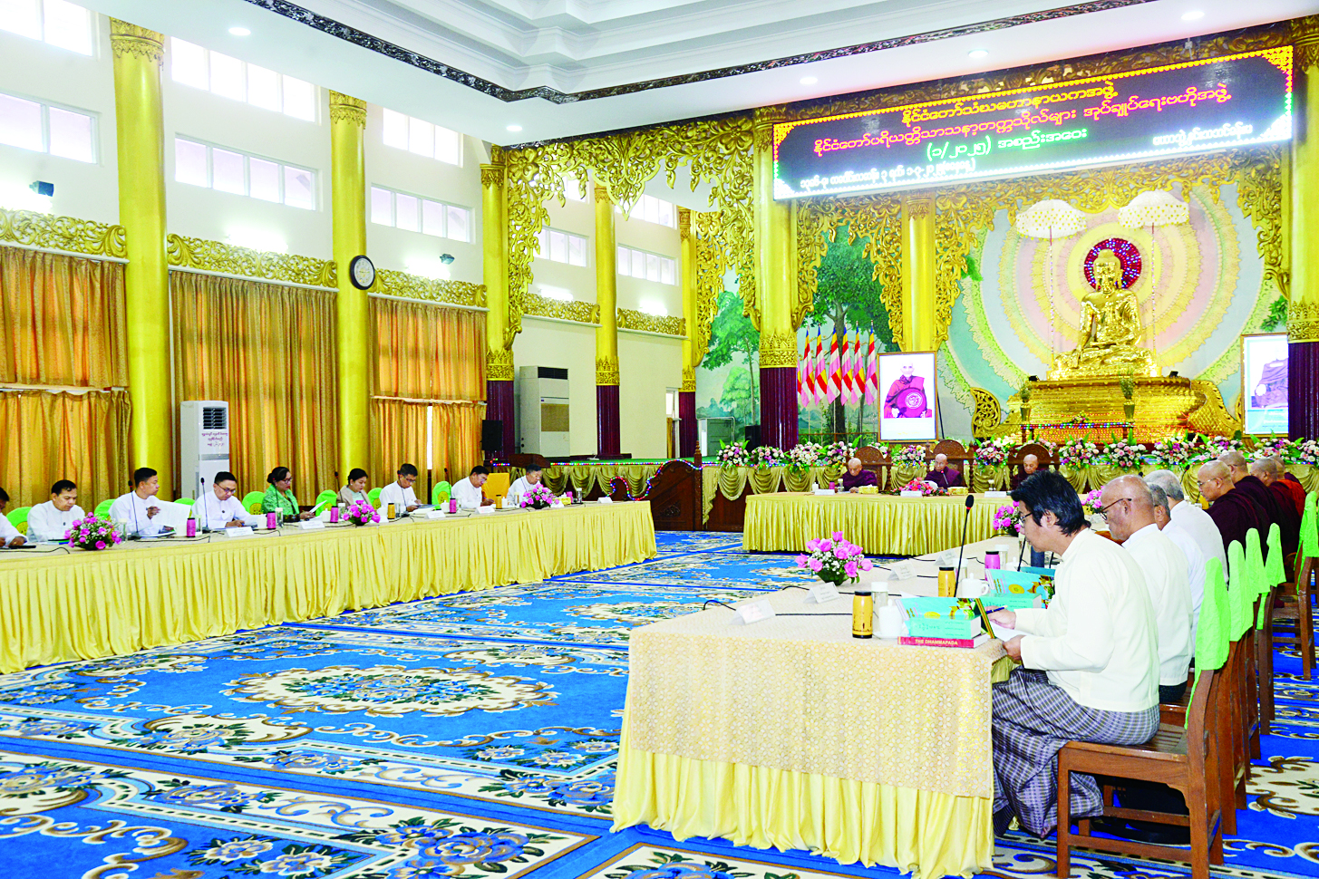 ဆက်လက်၍ ပြည်ထောင်စုဝန်ကြီးသည် နံနက် ၉ နာရီတွင် ရန်ကုန်မြို့ ကမ္ဘာအေးကုန်းမြေ နိုင်ငံတော် ပရိယတ္တိသာသနာ့တက္ကသိုလ်(ရန်ကုန်) မဟာဘွဲ့နှင်းသဘင်ခန်းမ၌ ကျင်းပသည့် နိုင်ငံတော်သံဃမဟာနာယကအဖွဲ့ နိုင်ငံတော်ပရိယတ္တိ သာသနာ့တက္ကသိုလ်များ အုပ်ချုပ်ရေးဗဟိုအဖွဲ့အစည်းအဝေး (၁/၂၀၂၅) သို့ တက်ရောက်သည်၊၊