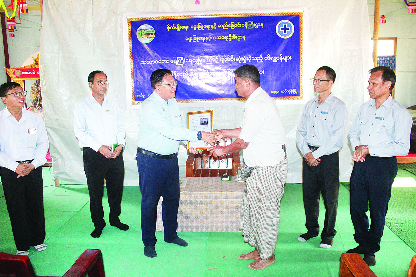ဆက်လက်၍ သဘာဝဘေးရေကြီးရေလျှံမှုကြောင့် ပျက်စီးဆုံးရှုံးခဲ့သည့် မွေးမြူရေးတောင်သူ ၅၇ ဦးအတွက် ဒေသနွား ၂၅၄ ကောင်ကို ဒုတိယဝန်ကြီးနှင့် မွေးမြူရေးနှင့် ကုသရေးဦးစီးဌာန ခေတ္တညွှန်ကြားရေးမှူးချုပ်တို့က ပေးအပ်ကြသည်။