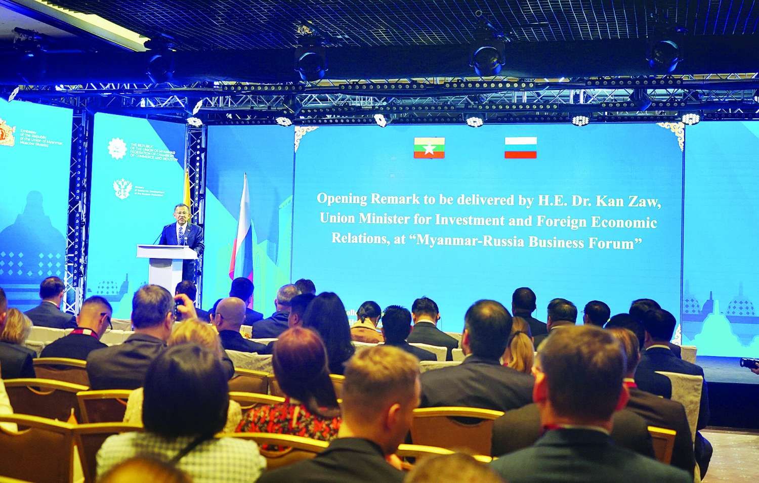 ရုရှားဖက်ဒရေးရှင်းနိုင်ငံဆိုင်ရာ မြန်မာနိုင်ငံသံရုံး၊ ပြည်ထောင်စုသမ္မတမြန်မာနိုင်ငံတော်ကုန်သည်များနှင့် စက်မှုလက်မှုလုပ်ငန်းရှင်များအသင်းချုပ် (UMFCCI) နှင့် Myanmar Airways International (MAI)၊ Roscongress Foundation၊ Fund RC-Investments၊ Russia-ASEAN Business Council နှင့် Russia - Myanmar Business Council တို့ ပူးပေါင်းကျင်းပသည့် ရုရှား - မြန်မာ စီးပွားရေးဖိုရမ်အား ယနေ့ဒေသစံတော်ချိန်နံနက်ပိုင်းတွင် မော်စကိုမြို့ Radisson Collection ဟိုတယ်ရှိ Business Hall ၌ ကျင်းပပြုလုပ်သည်။