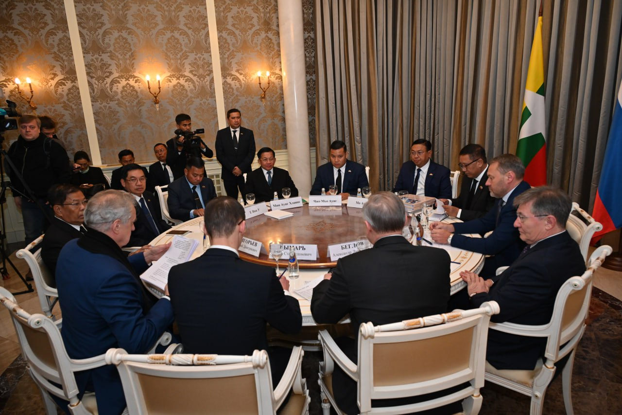 ရုရှားဖက်ဒရေးရှင်းနိုင်ငံသို့ ရုရှားဖက်ဒရေးရှင်းနိုင်ငံ၊ စိန့်ပီတာစဘတ်မြို့သို့ တရားဝင်ချစ်ကြည်ရေးခရီး ရောက်ရှိနေသည့် နိုင်ငံတော်စီမံအုပ်ချုပ်ရေးကောင်စီဥက္ကဋ္ဌ နိုင်ငံတော်ဝန်ကြီးချုပ် ဗိုလ်ချုပ်မှူးကြီး မင်းအောင်လှိုင်သည် စိန့်ပီတာစဘတ်မြို့အုပ်ချုပ်ရေးမှူး မစ္စတာအလက်ဇန္ဒားဘယ်ဂ်လော့နှင့် မတ်လ ၅ ရက်နေ့ဒေသစံတော်ချိန် ညနေပိုင်းတွင် စိန့်ပီတာစဘတ်မြို့၊ အစိုးရဧည့်ဂေဟာ K2 ရှိ အစည်းအဝေးခန်းမ၌ တွေ့ဆုံဆွေးနွေးသည်။