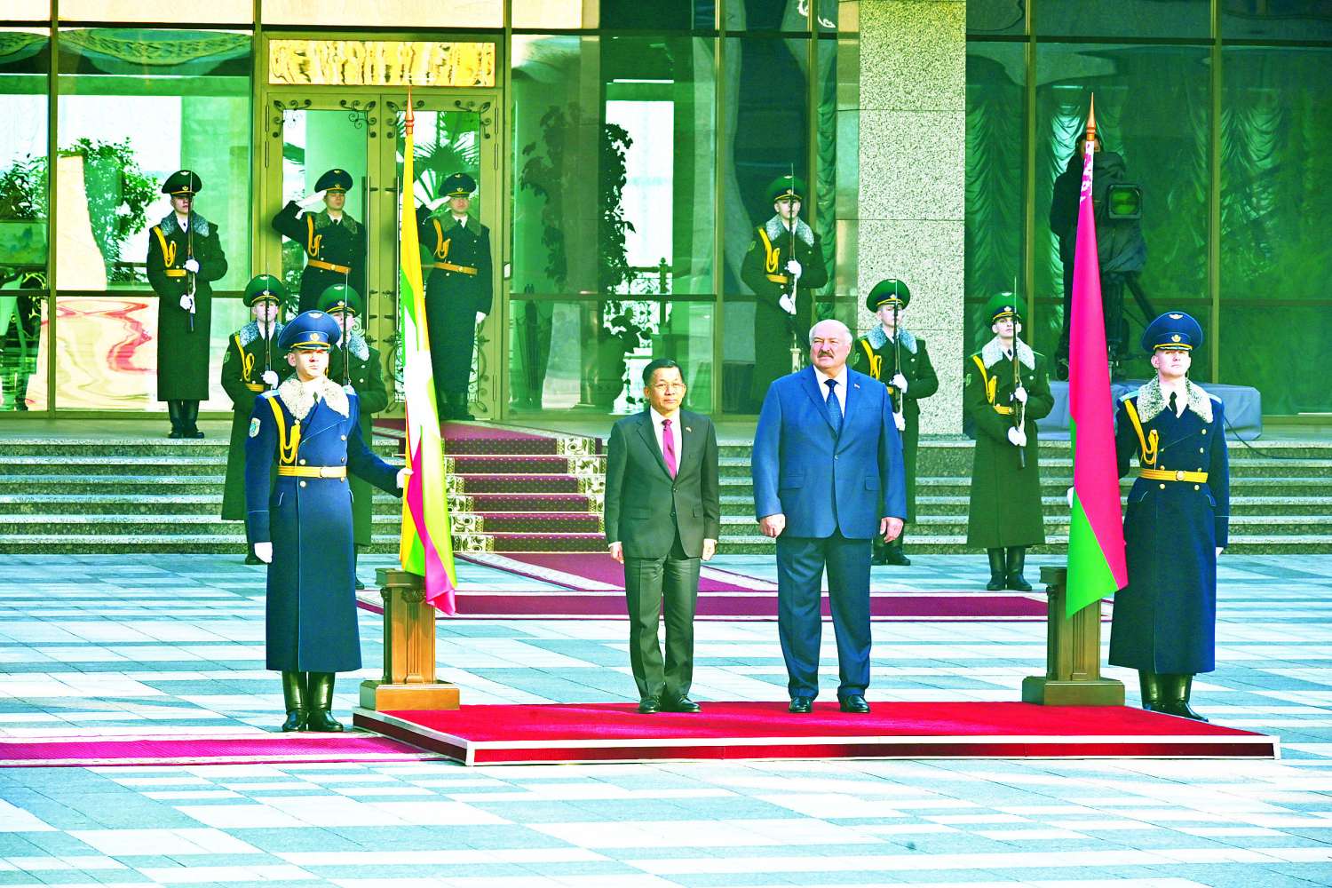 နိုင်ငံတော်စီမံအုပ်ချုပ်ရေးကောင်စီဥက္ကဋ္ဌ နိုင်ငံတော်ဝန်ကြီးချုပ် ဗိုလ်ချုပ်မှူးကြီး မင်းအောင်လှိုင်အား ဘယ်လာရုစ်သမ္မတနိုင်ငံသမ္မတ H.E. Mr. Alexander Gregoryevich Lukashenko က ဂုဏ်ပြုကြိုဆို တွေ့ဆုံဆွေးနွေး