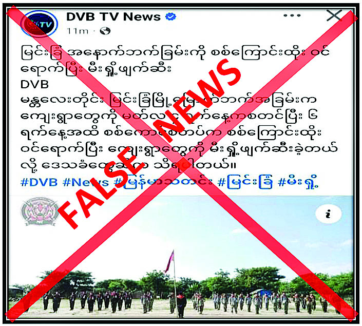မန္တလေးတိုင်းဒေသကြီး မြင်းခြံမြို့ အနောက်ဘက်ခြမ်းရှိ ကျေးရွာများကို မတ် ၄ ရက်မှ ၆ ရက်အထိ လုံခြုံရေးတပ်ဖွဲ့ဝင်များက မီးရှို့ဖျက်ဆီးခဲ့ကြောင်း တရားမဝင်ပြည်ဖျက်မီဒီယာများက မဟုတ်မမှန် သတင်းအတုသတင်းအမှားများ ရေးသားဖြန့်ဝေလျက်ရှိကြောင်း တွေ့ရသည်။