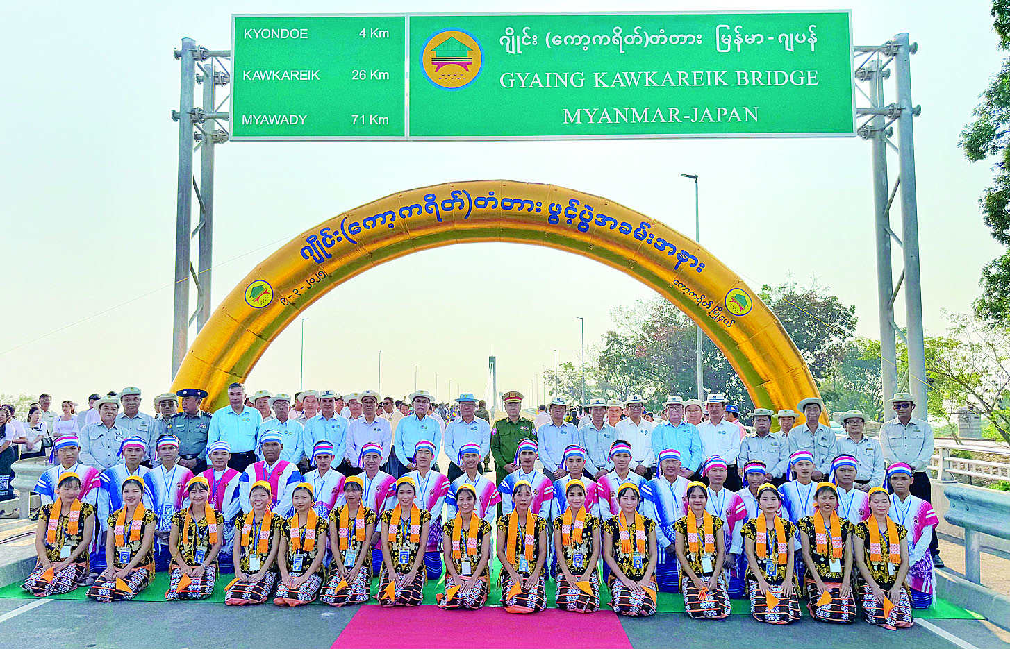 ဦးစွာ ပြည်ထောင်စုဝန်ကြီး ဦးမျိုးသန့်၊ ကရင်ပြည်နယ်ဝန်ကြီးချုပ် ဦးစောမြင့်ဦး၊ ကရင်ပြည်နယ် တရားလွှတ်တော်တရားသူကြီးချုပ် ဦးညွန့်လင်း၊ ကရင်ပြည်နယ် လမ်းပန်းဆက်သွယ်ရေးဝန်ကြီး ဦးညီညီဇော်နှင့် အရှေ့တောင်တိုင်းစစ်ဌာနချုပ် ဒုတိယတိုင်းမှူးတို့က ဂျိုင်း (ကော့ကရိတ်) တံတားကို ဖဲကြိုးဖြတ်၍ ဖွင့်လှစ်ပေးပြီး ပြည်ထောင်စုဝန်ကြီးနှင့် ကရင်ပြည်နယ်ဝန်ကြီးချုပ်တို့က တံတားကမ္ပည်းမော်ကွန်းအား စက်ခလုတ်နှိပ်ဖွင့်လှစ်ပေးကာ အမွှေးနံ့သာရည်များပက်ဖျန်းပြီး တံတားပေါ်မှ ဖြတ်သန်းကြည့်ရှုစစ်ဆေးကြသည်။