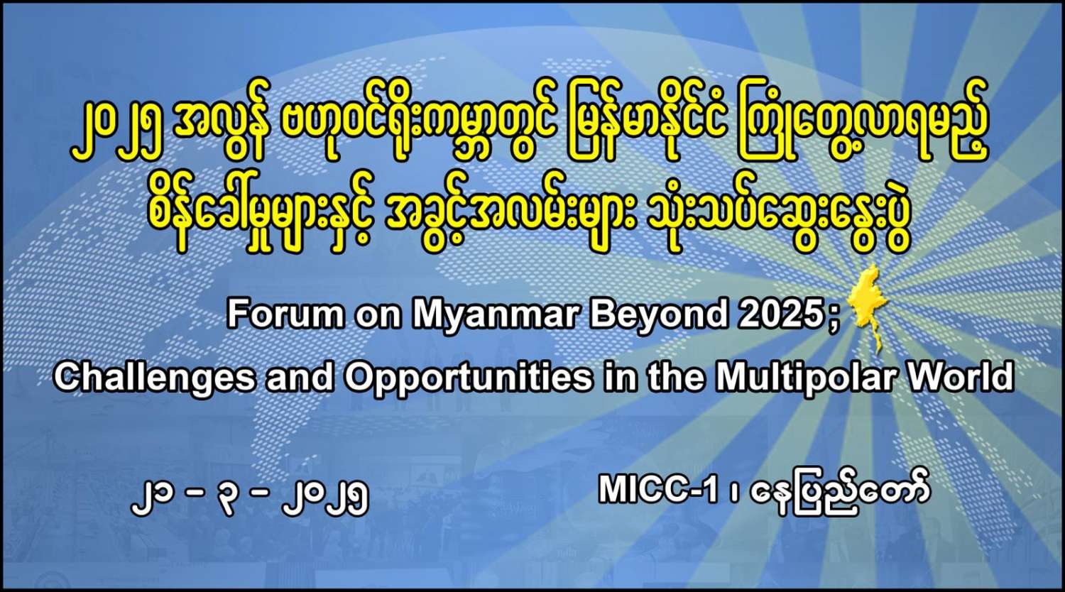 ၂၀၂၅ အလွန် ဗဟုဝင်ရိုးကမ္ဘာတွင် မြန်မာနိုင်ငံကြုံတွေ့လာရမည့် စိန်ခေါ်မှုများနှင့် အခွင့်အလမ်းများ သုံးသပ်ဆွေးနွေးပွဲ ကျင်းပမည်