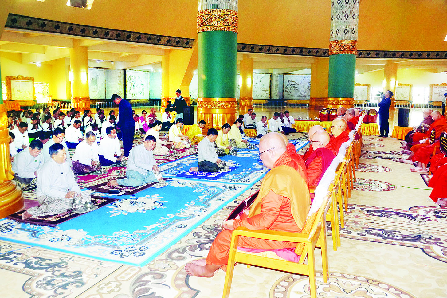 နေပြည်တော် ဥပ္ပါတသန္တိစေတီတော်မြတ်ကြီး လိုဏ်တော်အတွင်း၌ ကိန်းဝပ်စံပယ်တော်မူလျက်ရှိသည့် မဟာမဏိမယရတနာကျောက်စိမ်း ဗုဒ္ဓရုပ်ပွားဆင်းတုတော်မြတ်လေးဆူနှင့် မဟာဆုတောင်းပြည့် (ပန်းပေါင်း) ဘုရားကြီးတို့အား (၁၇) ကြိမ်မြောက် ရွှေကြာသင်္ကန်းကပ်လှူခြင်းနှင့် ဗုဒ္ဓါဘိသေကအနေကဇာတင်ပူဇော်ပွဲအခမ်းအနားကို ယနေ့ နံနက် ၆ နာရီခွဲတွင် ကျင်းပသည်။