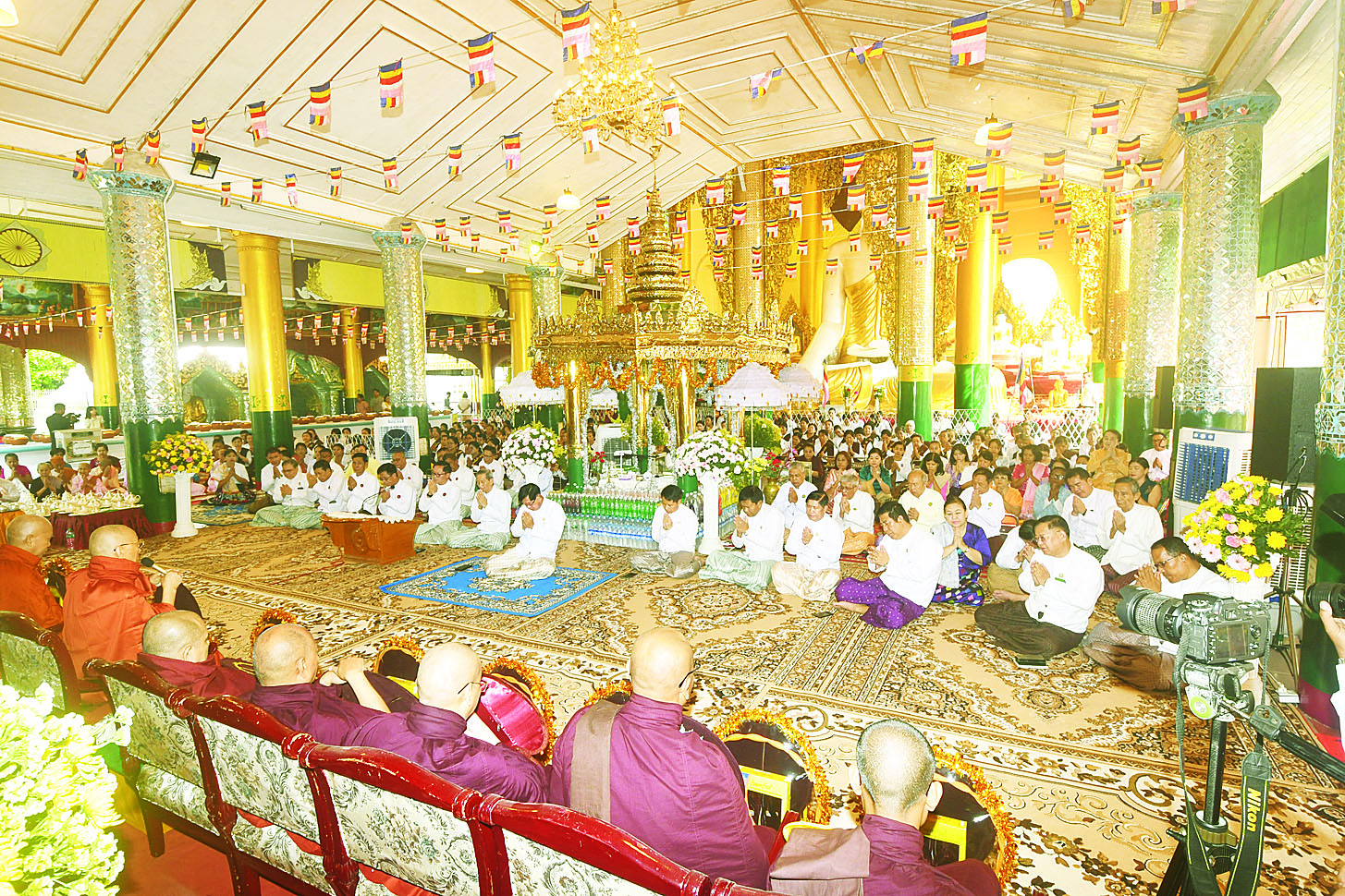 ယင်းနောက် ရွှေတိဂုံစေတီတော်ဘဏ္ဍာတော်ထိန်းဂေါပကအဖွဲ့၏ ဩဝါဒါစရိယ တိပိဋကဓရတိပိဋကကောဝိဒ ဓမ္မဘဏ္ဍာဂါရိကစွန်းလွန်းဆရာတော်ဘဒ္ဒန္တသုန္ဒရထံမှ ဧည့်ပရိသတ်များက ကိုးပါးသီလခံယူဆောက်တည်ကြပြီး ရွှေတိဂုံစေတီတော် ဘဏ္ဍာတော်ထိန်း ဂေါပကအဖွဲ့အလှည့်ကျသဘာပတိဂေါပကအဖွဲ့ဝင် ဦးကျော်ဇေယျက ဗုဒ္ဓပူဇနိယမင်္ဂလာအနုမောဒနာအား လျှောက်ထားသည်။