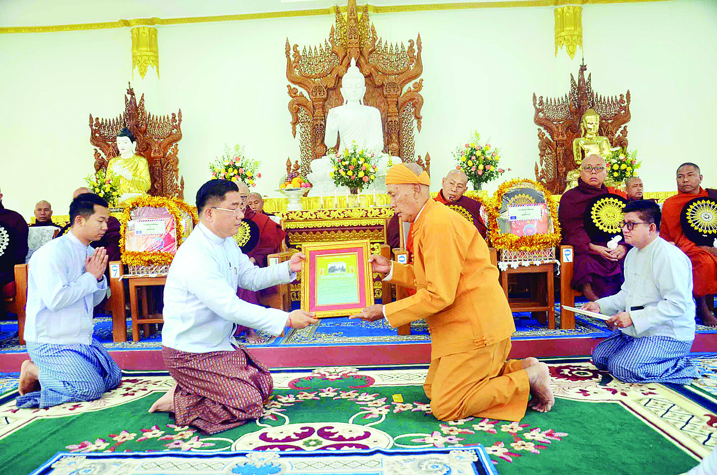 ဆက်လက်၍ သီရိမင်္ဂလာတောင်တော် (တောင်ကွဲ) စေတီတော် ဂေါပကအဖွဲ့ဥက္ကဋ္ဌက ပါဝင်လှူဒါန်းခဲ့ကြသည့် စေတနာရှင်အလှူရှင်များအား လှူဒါန်းမှုအစုစုအတွက် ဂုဏ်ပြုမှတ်တမ်းလွှာများပေးအပ်ရာ နိုင်ငံတော်စီမံအုပ်ချုပ်ရေးကောင်စီဥက္ကဋ္ဌ နိုင်ငံတော်ဝန်ကြီးချုပ် ဗိုလ်ချုပ်မှူးကြီး မင်းအောင်လှိုင်၊ ဇနီး ဒေါ်ကြူကြူလှနှင့် သားသမီးမြေးတစ်စုတို့၏လှူဒါန်းမှုတို့အတွက် ပြည်နယ်ဝန်ကြီးချုပ် ဦးဇော်မျိုးတင်ကလည်းကောင်း၊ လွိုင်ကော်တပ်နယ်မှလှူဒါန်းမှုအတွက် တာဝန်ရှိသူ တစ်ဦးကလည်းကောင်း၊ ကယားပြည်နယ်အစိုးရအဖွဲ့နှင့် ပြည်နယ်အဆင့်ဌာနဆိုင်ရာများ၊ ပြင်ပအလှူရှင်များ၏လှူဒါန်းမှုအတွက် လူမှုရေးရာဝန်ကြီးကလည်းကောင်း၊ တစ်ဦးချင်းလှူဒါန်းသည့် အလှူရှင်များကလည်းကောင်း ဂုဏ်ပြုမှတ်တမ်းလွှာများ လက်ခံရယူကြသည်။