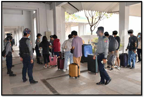 ထိုင်းနိုင်ငံအပါအဝင် အိမ်နီးချင်းနိုင်ငံအချို့ကို တစ်ဆင့်ခံဖြတ်သန်း၍ မြန်မာနိုင်ငံအတွင်းသို့ နယ်စပ်လမ်းကြောင်းများမှ တရားမဝင်ဝင်ရောက်လာပြီး ကရင်ပြည်နယ်၊ မြဝတီမြို့-ရွှေကုက္ကိုလ်၊ မယ်ထော်သလေး၊ မင်းလက်ပံနှင့် KK Park နယ်မြေများတွင် အွန်လိုင်းလောင်းကစားမှုများ၊ အွန်လိုင်းလိမ်လည်မှုများအပါအဝင် ဒုစရိုက်မှုများကျူးလွန်ခဲ့ကြသည့် ပြည်ပနိုင်ငံသားများကို စစ်ဆေးဖော်ထုတ်၍ စနစ်တကျ ပြည်နှင်လွှဲပြောင်းပေးလျက်ရှိရာ ယနေ့တွင် အင်ဒိုနီးရှားနိုင်ငံသား ၁၆၉ ဦးနှင့် ဘင်္ဂလားဒေ့ရှ်နိုင်ငံသား ၁၉ ဦးနှင့် ဂျပန်နိုင်ငံသား ၁ ဦး၊ စုစုပေါင်း ၁၈၉ ဦးတို့အား မြန်မာ-ထိုင်းအမှတ်(၂) ချစ်ကြည်ရေးတံတားမှတစ်ဆင့် သက်ဆိုင်ရာနိုင်ငံများသို့ လူသားချင်းစာနာထောက်ထားမှုနှင့် နိုင်ငံအချင်းချင်း ချစ်ကြည်ရင်းနှီးမှုတို့ကို ရှေးရှု၍ ဥပဒေလုပ်ထုံးလုပ်နည်းများနှင့်အညီ ပြည်နှင်လွှဲပြောင်းပေးအပ်ခဲ့ပြီး ပြည်ပနိုင်ငံသား ၂၄၂ ဦးကို ထပ်မံစစ်ဆေးဖော်ထုတ်ထိန်းသိမ်းနိုင်ခဲ့သည်။
