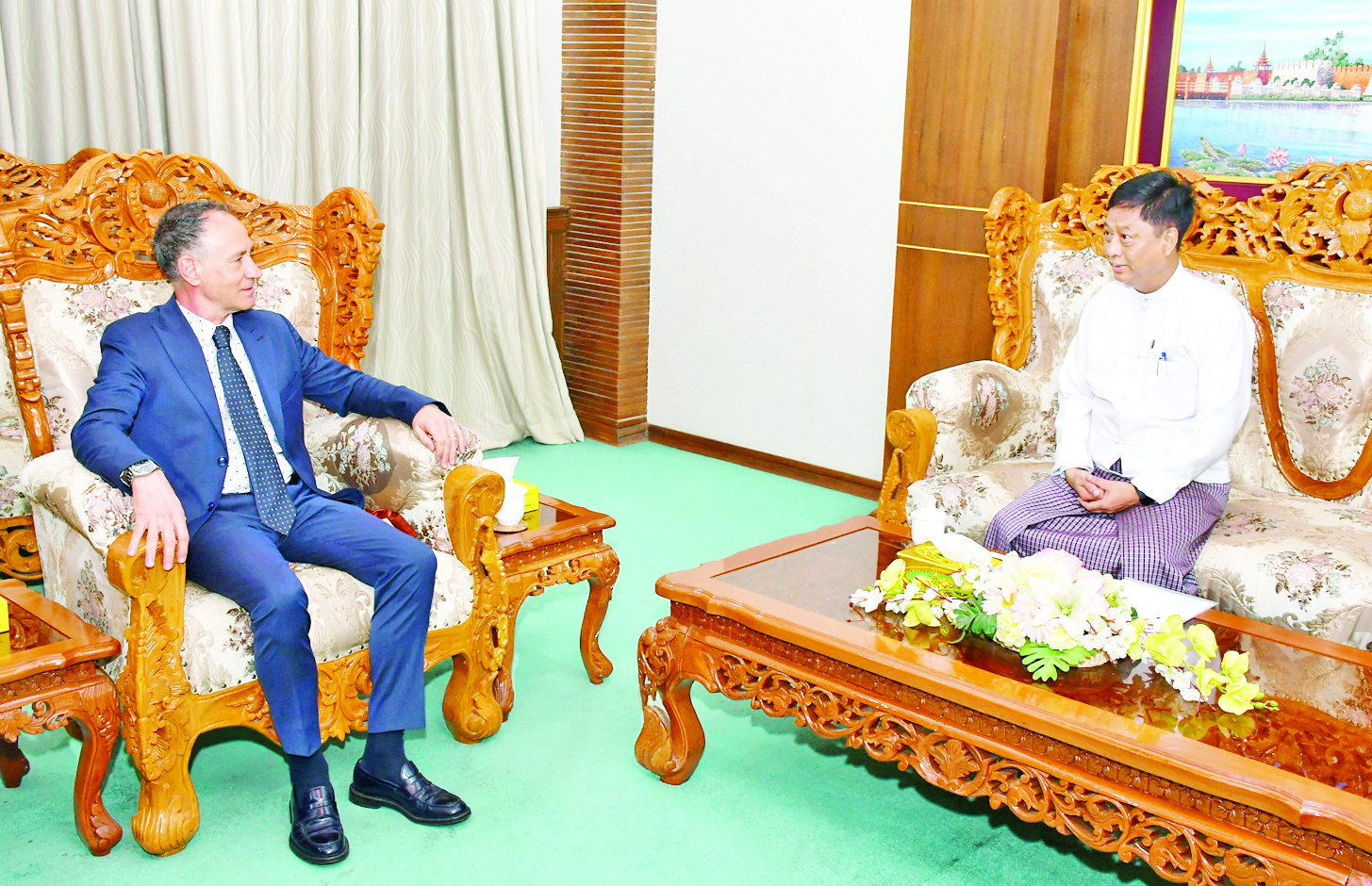 ဒုတိယဝန်ကြီး ဦးလွင်ဦး မြန်မာနိုင်ငံဆိုင်ရာ ကုလသမဂ္ဂ ယာယီဌာနေညှိနှိုင်းရေးမှူးနှင့် လူသားချင်းစာနာထောက်ထားမှုဆိုင်ရာ ယာယီညှိနှိုင်းရေးမှူး Mr. Marcoluigi Corsi အား လက်ခံတွေ့ဆုံ