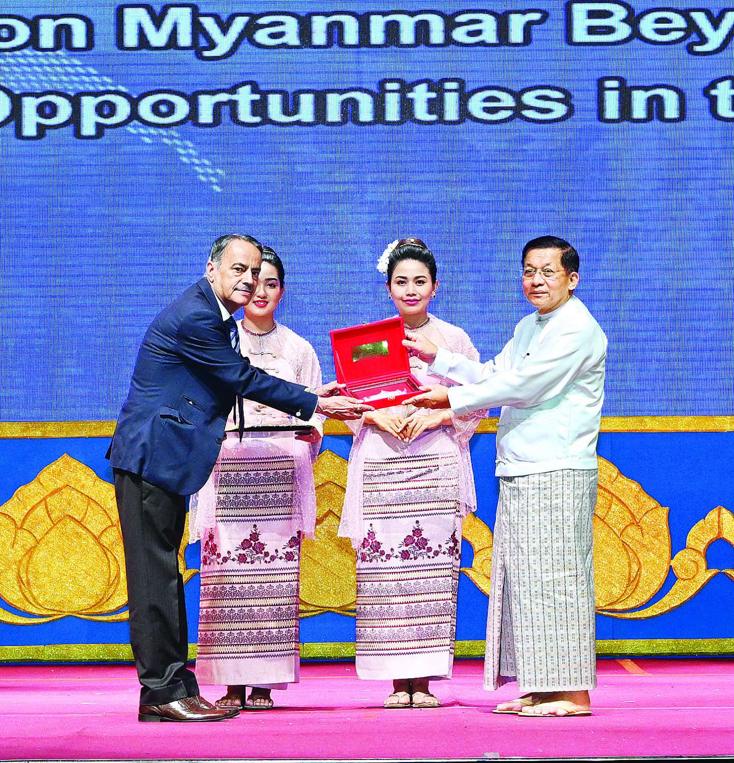 ယင်းနောက် နိုင်ငံတော်စီမံအုပ်ချုပ်ရေးကောင်စီဥက္ကဋ္ဌ နိုင်ငံတော်ဝန်ကြီးချုပ်က ပြည်ပမှ လာရောက်ဆွေးနွေးကြသည့် ပညာရှင်များအား အထိမ်းအမှတ်တံဆိပ်များ ပေးအပ်သည်။