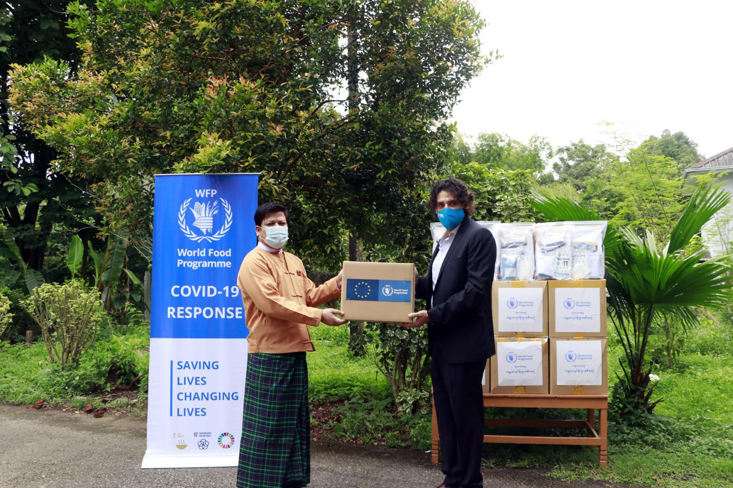 အဆိုပါ တစ်ကိုယ်ရည်ကာကွယ်ရေး ဝတ်စုံပြည့် (PPE)များကို WFP မှ တာဝန်ရှိ သူများက ပေးအပ်လှူဒါန်းခဲ့ရာ ရန်ကုန်တိုင်းဒေသကြီးအစိုးရအဖွဲ့ လူမှုရေးဝန်ကြီး ဦးနိုင်ငံလင်းက လက်ခံရယူခဲ့သည်။