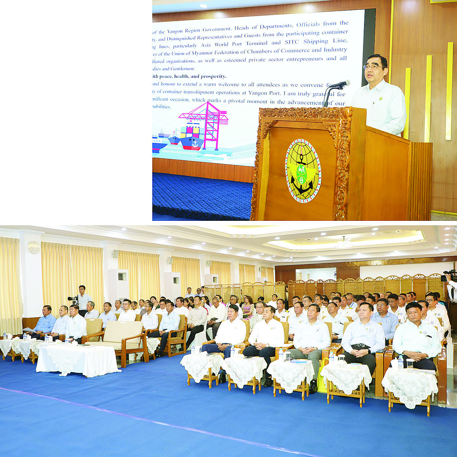 မြန်မာ့ဆိပ်ကမ်းအာဏာပိုင်မှ ဦးဆောင်ပြုလုပ်သည့် ပထမအကြိမ် ရေယာဉ်လွှဲပြောင်းတင်ဆောင်ခြင်း (Transshipment) လုပ်ငန်းစဉ် စတင်ခြင်းအခမ်းအနားကျင်းပ