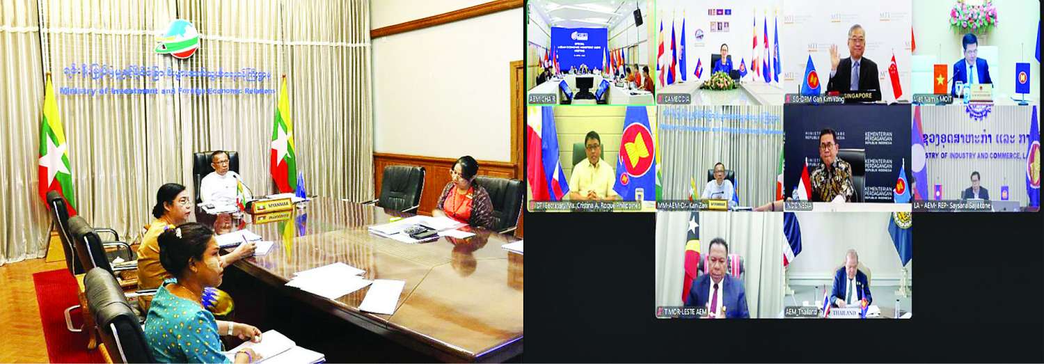 ယနေ့နံနက်ပိုင်းတွင် ဗီဒီယိုကွန်ဖရင့်စနစ်ဖြင့် ကျင်းပသည့် အာဆီယံစီးပွားရေးဝန်ကြီးများ အထူးအစည်းအဝေးသို့ မြန်မာနိုင်ငံ၏ အာဆီယံစီးပွားရေးဝန်ကြီး၊ ရင်းနှီးမြှုပ်နှံမှုနှင့် နိုင်ငံခြားစီးပွားဆက်သွယ်ရေးဝန်ကြီးဌာန ပြည်ထောင်စုဝန်ကြီး ဒေါက်တာကံဇော် ဦးဆောင်သည့် ကိုယ်စားလှယ်အဖွဲ့ ပါဝင်တက်ရောက်သည်။