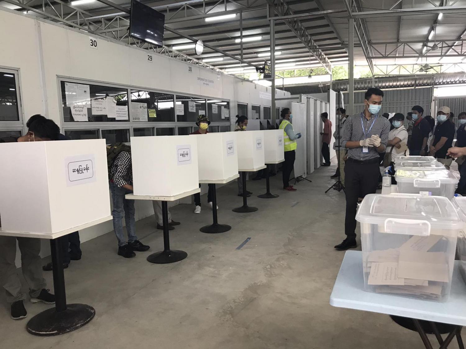 ထို့အပြင် သက်ဆိုင်ရာ မြန်မာသံရုံးများနှင့် ကောင်စစ်ဝန်ချုပ်ရုံးများသို့ လာရောက်၍ ကြိုတင်ဆန္ဒမဲ ပေးနိုင်ခြင်း မရှိသည့် မြန်မာနိုင်ငံသားများအတွက် ပြင်ပ မဲရုံခွဲများ ဖွင့်လှစ်ခဲ့ရာ ဩစတြေးလျနိုင်ငံ ဘရစ်စဘိန်း မြို့တွင် မဲဆန္ဒရှင် ( ၈၈ ) ဉီး၊ ဟန်ဂေရီနိုင်ငံ ဘူဒါပက်စ်မြို့တွင် မဲဆန္ဒရှင်( ၃၇ ) ဉီး၊ ဂျပန်နိုင်ငံ နာဂိုယာမြို့တွင် မဲဆန္ဒရှင် (၂၃၃)ဉီးနှင့် တရုတ်ပြည်သူ့သမ္မတနိုင်ငံ မကာအိုဒေသတွင် မဲဆန္ဒရှင်(၂၂၃) ဉီး လာရောက်ကြိုတင်ဆန္ဒမဲပေးခဲ့ကြသည်။