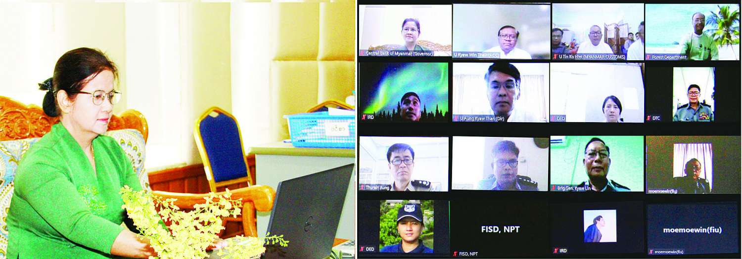 အစည်းအဝေးတွင် လုပ်ငန်းအဖွဲ့ဥက္ကဋ္ဌ မြန်မာနိုင်ငံတော်ဗဟိုဘဏ်၊ ဥက္ကဋ္ဌ ဒေါ်သန်းသန်းဆွေက မြန်မာနိုင်ငံ၏ ငွေကြေးခဝါချမှုနှင့် အကြမ်းဖက်မှုကို ငွေကြေးထောက်ပံ့မှုတိုက်ဖျက်ရေး အကောင်အထည်ဖော်ဆောင်ရွက်မှုဆိုင်ရာ (၁၄) ကြိမ်မြောက် တိုးတက်မှုအစီရင်ခံစာအပေါ် APJG မှ အကဲဖြတ်သူများ၏ ထပ်မံမေးမြန်းအကြံပြုချက်များကို ပြန်လည်ရှင်းလင်းဖြေကြားနိုင်ရေးအတွက် လိုအပ်သည့် အချက်အလက်များနှင့် ထပ်မံဖြည့်စွက်ဖြေကြားရမည့် အချက်အလက်များကိုလည်းကောင်း၊ ဧပြီ ၂၄ ရက်တွင် ကျင်းပပြုလုပ်မည့် APJG မျက်နှာချင်းဆိုင်အစည်းအဝေးသို့ Online ဖြင့် သက်ဆိုင်ရာ တာဝန်ရှိသူများနှင့် အဆင်ပြေချောမွေ့စွာ တက်ရောက်နိုင်ရေးအတွက် စီစဉ်ဆောင်ရွက်ပေးမည့် ကိစ္စရပ်များကိုလည်းကောင်း ဆွေးနွေးပြောကြားသည်။