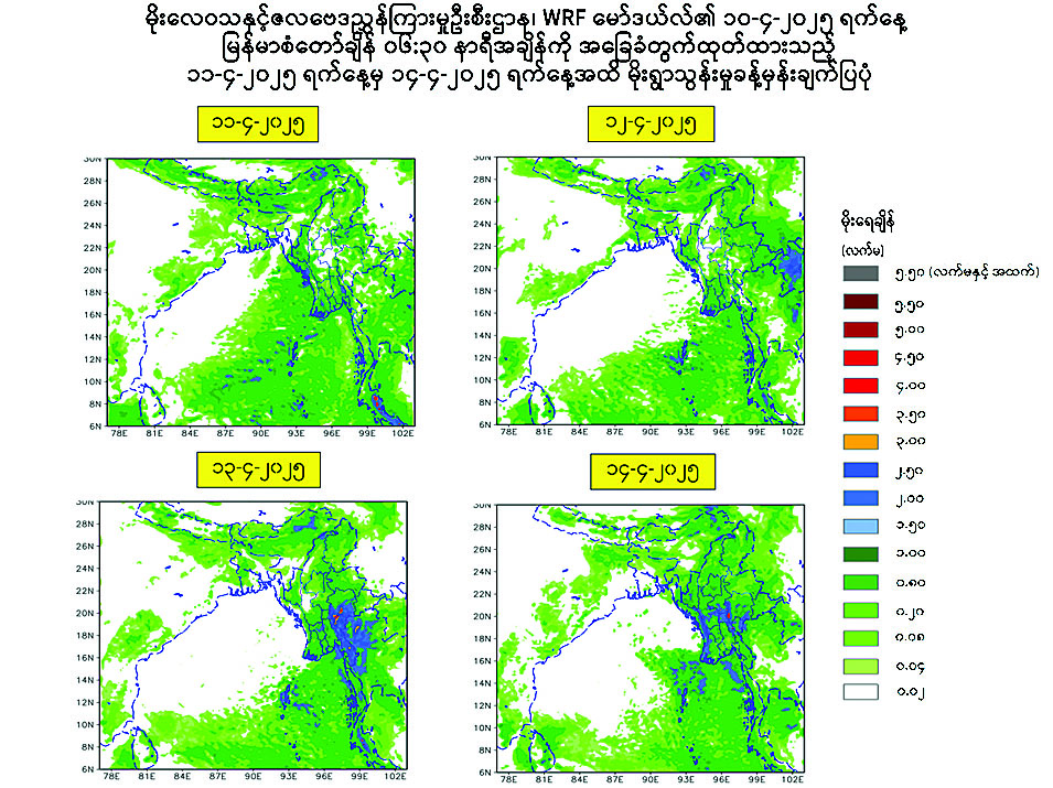 သို့ဖြစ်၍ မိုးသည်းထန်စွာရွာသွန်းခြင်းနှင့်အတူ လေပြင်းတိုက်ခတ်ခြင်း၊ မိုးထစ်ချုန်းခြင်း၊ မိုးကြိုးပစ်ခြင်း၊ လျှပ်စီးလက်ခြင်း၊ မိုးသီးကြွေခြင်း၊ လျှပ်တစ်ပြက်ရေကြီးခြင်းနှင့် မြေပြိုခြင်းစသည့် သဘာဝဘေးအန္တရာယ်များ ဖြစ်ပေါ်နိုင်ပါသဖြင့် အဆိုပါဒေသများရှိ ကုန်းမြင့်ဒေသအနီးတွင် နေထိုင်ကြသူများအနေဖြင့် မြေပြိုမှုအန္တရာယ်ကိုလည်းကောင်း၊ မြစ်ငယ်၊ ချောင်းငယ်များအနီးတွင် နေထိုင်ကြသူများအနေဖြင့် ရေကြီး၊ ရေလျှံမှုအန္တရာယ်များကိုလည်းကောင်း ကြိုတင်သတိပြုရှောင်ရှားနိုင်ပါရန် အကြံပြုအပ်ပါသည်။