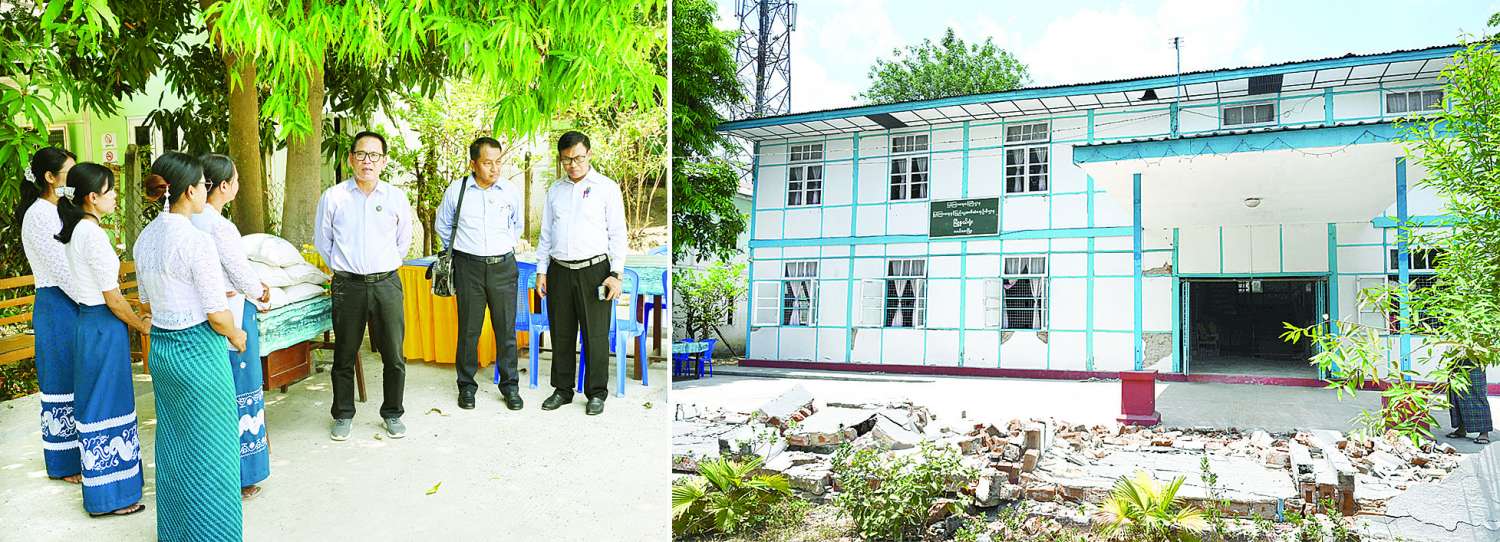 ဆက်လက်၍ ပြည်ထောင်စုဝန်ကြီးသည် ပြန်ကြားရေးနှင့်ပြည်သူ့ဆက်ဆံရေးဦးစီးဌာန လယ်ဝေးမြို့နယ်ရုံးသို့ သွားရောက်၍ ငလျင်ဒဏ်ကြောင့် ပျက်စီးဆုံးရှုံးမှုအခြေအနေနှင့် လုပ်ငန်းများ ပြန်လည်လည်ပတ်နိုင်ရန် ဆောင်ရွက်ပေးရမည့် အခြေအနေများကို ကြည့်ရှုစစ်ဆေးကာ ဝန်ထမ်းများအားငလျင်ဒဏ်ကြောင့် ထိခိုက်ပျက်စီးမှုများကို အမြန်ဆုံးပြင်ဆင်ဆောင်ရွက်ပေးမည်ဖြစ် ကြောင်း၊ ငလျင်ဒဏ်ကြောင့် ဝန်ထမ်းများ ထိခိုက်ဒဏ်ရာရမှုမရှိသည်ကို တွေ့ရသည့်အတွက် ဝမ်းမြောက်ပါကြောင်း၊ မိမိတို့၏ရုံးများကို မူလအတိုင်း ပြန်လည်ပြင်ဆင်၍ ယခင်အတိုင်း လုပ်ငန်းများဆောင်ရွက်နိုင်ရန် ကြိုးပမ်းကြစေလိုကြောင်း အားပေးစကားပြောကြားပြီး ဝန်ထမ်းများအတွက် ထောက်ပံ့ငွေနှင့် စားသောက်ဖွယ်ရာများ ပေးအပ်သည်။