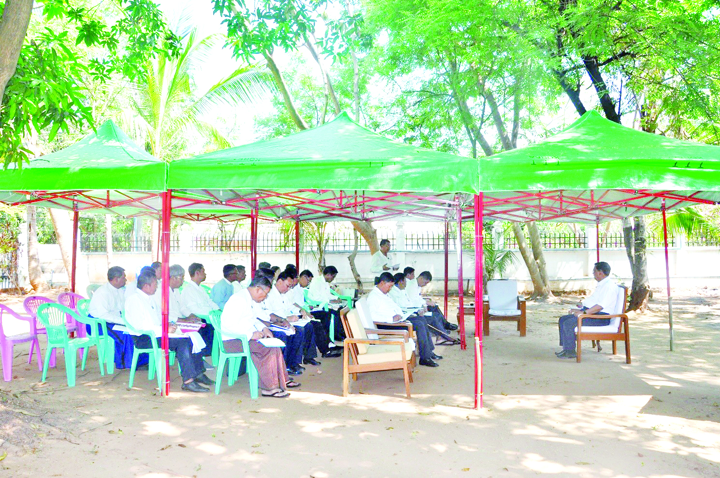 စက်မှုဝန်ကြီးဌာန သဘာဝဘေးအန္တရာယ် ဆိုင်ရာစီမံခန့်ခွဲမှု ညှိနှိုင်းအစည်းအဝေးကို ယနေ့နံနက်ပိုင်းတွင် ခြံအမှတ် အေ-၅ ၌ ကျင်းပရာ စက်မှုဝန်ကြီးဌာန သဘာဝဘေးအန္တရာယ်ဆိုင်ရာစီမံခန့်ခွဲမှု ကော်မတီဥက္ကဋ္ဌစက်မှုဝန်ကြီးဌာန ပြည်ထောင်စုဝန်ကြီး ဒေါက်တာချာလီသန်း၊ စက်မှုဝန်ကြီးဌာန သဘာဝဘေးအန္တရာယ်ဆိုင်ရာ စီမံခန့်ခွဲမှုကော်မတီအဖွဲ့ဝင်များဖြစ်ကြသည့် ညွှန်ကြားရေးမှူးချုပ်များ၊ ဦးဆောင်ညွှန်ကြားရေးမှူးများ၊ ဒုတိယအမြဲတမ်းအတွင်းဝန်၊ အထွေထွေမန်နေဂျာများ တက်ရောက်သည်။