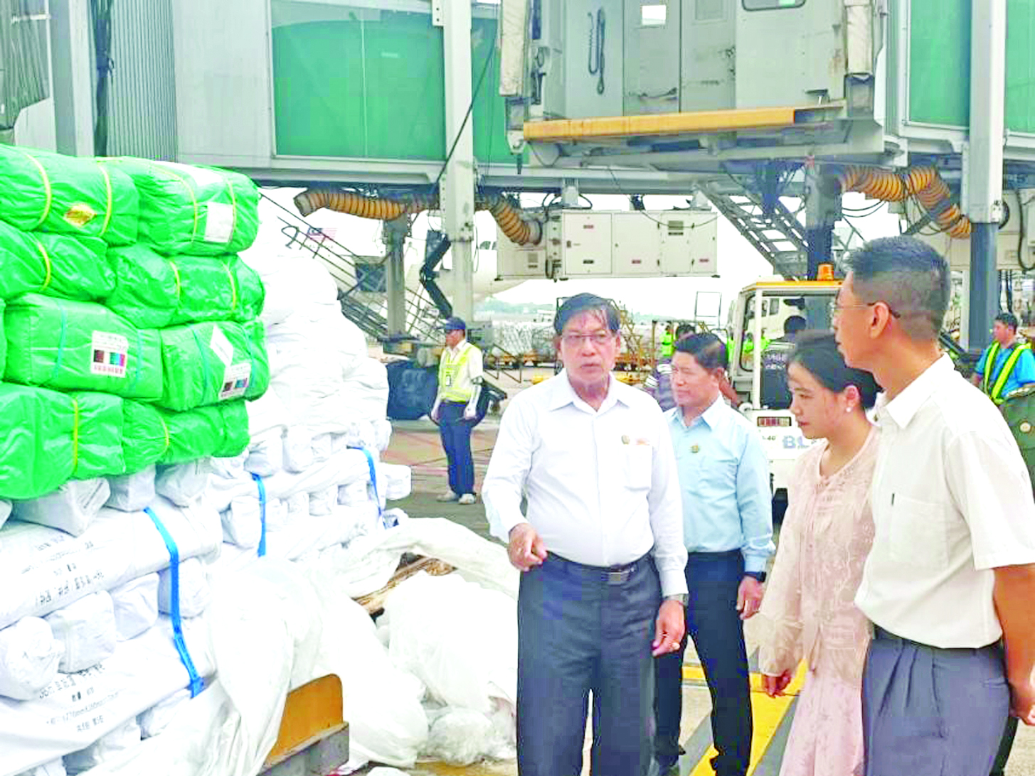မြန်မာနိုင်ငံ၌ မတ် ၂၈ ရက်တွင် လှုပ်ခတ်ခဲ့သည့် မန္တလေးမြေငလျင် ကြီးကြောင့် နေပြည်တော်ကောင်စီနယ်မြေ၊ စစ်ကိုင်းတိုင်းဒေသကြီး၊ မန္တလေးတိုင်းဒေသကြီး၊ မကွေးတိုင်းဒေသကြီး၊ ရှမ်းပြည်နယ်နှင့် ပဲခူးတိုင်းဒေသကြီးတို့တွင် ပျက်စီးဆုံးရှုံးမှုများဖြစ်ပေါ်ခဲ့ရာ နိုင်ငံတော် အစိုးရအနေဖြင့် အလျင်အမြန်စုံစမ်းစစ်ဆေးခြင်း၊ ကူညီကယ်ဆယ်ရေး လုပ်ငန်းများကို အချိန်နှင့်တစ်ပြေးညီ ဆောင်ရွက်ခြင်းနှင့် ပြည်ပမှ လူသားချင်းစာနာထောက်ထားမှုဆိုင်ရာ အကူအညီများကို ဖိတ်ခေါ်လမ်းဖွင့်ပေးခြင်းများ ဆောင်ရွက်ခဲ့သည်။ ငလျင်ဒဏ်သင့်ပြည်သူ များထံ နိုင်ငံတကာမှကူညီထောက်ပံ့သည့် လူသားချင်းစာနာထောက်ထား မှုဆိုင်ရာ အကူအညီပစ္စည်းများ၊ ဆေးဝါးများသည် မတ် ၂၉ ရက် ညပိုင်းမှစ၍ ရန်ကုန်အပြည်ပြည်ဆိုင်ရာလေဆိပ်၊ နေပြည်တော်အပြည်ပြည် ဆိုင်ရာလေဆိပ်၊ မန္တလေးအပြည်ပြည်ဆိုင်ရာလေဆိပ်နှင့် ရန်ကုန်သီလဝါဆိပ်ကမ်းတို့သို့ ရောက်ရှိလာခဲ့သည်။