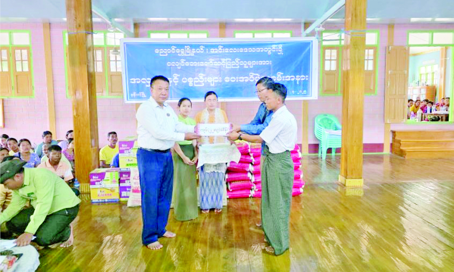 အထက်ပါပေးပို့လှူဒါန်းသောပစ္စည်းများကို ပြည်ထောင်စုနယ်မြေ နေပြည်တော်အတွင်း နေပြည်တော်ကောင်စီ၏ အစီအစဉ်ဖြင့်လည်းကောင်း၊ နေပြည်တော်ရှိ ဝန်ထမ်းမိသားစုများကို သက်ဆိုင်ရာဝန်ကြီးဌာနများ၏ အစီအစဉ်ဖြင့်လည်းကောင်း၊ ရန်ကုန်နှင့် နေပြည်တော်တို့မှ တစ်ဆင့် မန္တလေးတိုင်းဒေသကြီးသို့ မော်တော်ယာဉ် ၄၈ စီးဖြင့် ပေးပို့ခဲ့သည့် လှူဒါန်းပစ္စည်းများနှင့် မန္တလေး(တံတားဦး) အပြည်ပြည်ဆိုင်ရာ လေဆိပ်သို့ရောက်ရှိသည့် ပစ္စည်းများကို မန္တလေးတိုင်းဒေသကြီး အစိုးရအဖွဲ့အစီအစဉ်ဖြင့်လည်းကောင်း၊ စစ်ကိုင်းတိုင်းဒေသကြီးသို့ မော်တော်ယာဉ် ၂၁ စီးဖြင့် ပေးပို့ထားသည့် လှူဒါန်းပစ္စည်းများကို စစ်ကိုင်း တိုင်းဒေသကြီးအစိုးရအဖွဲ့အစီအစဉ်ဖြင့်လည်းကောင်း၊ ရှမ်းပြည်နယ် (တောင်ပိုင်း)သို့ မော်တော်ယာဉ်ငါးစီးဖြင့် ပေးပို့ခဲ့သည့် လှူဒါန်းပစ္စည်းများကို ရှမ်းပြည်နယ်အစိုးရအဖွဲ့အစီအစဉ်ဖြင့်လည်းကောင်း ခွဲဝေထောက်ပံ့ဆောင်ရွက်လျက်ရှိသည်။ လှူဒါန်းရရှိသည့်ပစ္စည်း များအနက် ဆေးနှင့်ဆေးပစ္စည်းများ၊ ခွဲစိတ်ခန်းသုံးပစ္စည်းများနှင့် ဆေးရုံသုံးပစ္စည်းများကို ကျန်းမာရေးဝန်ကြီးဌာနသို့ လွှဲပြောင်းပေးအပ်ကာ ဒဏ်ရာရရှိသည့်ပြည်သူများအား ကုသရာတွင် အသုံးပြုလျက်ရှိ သည်။