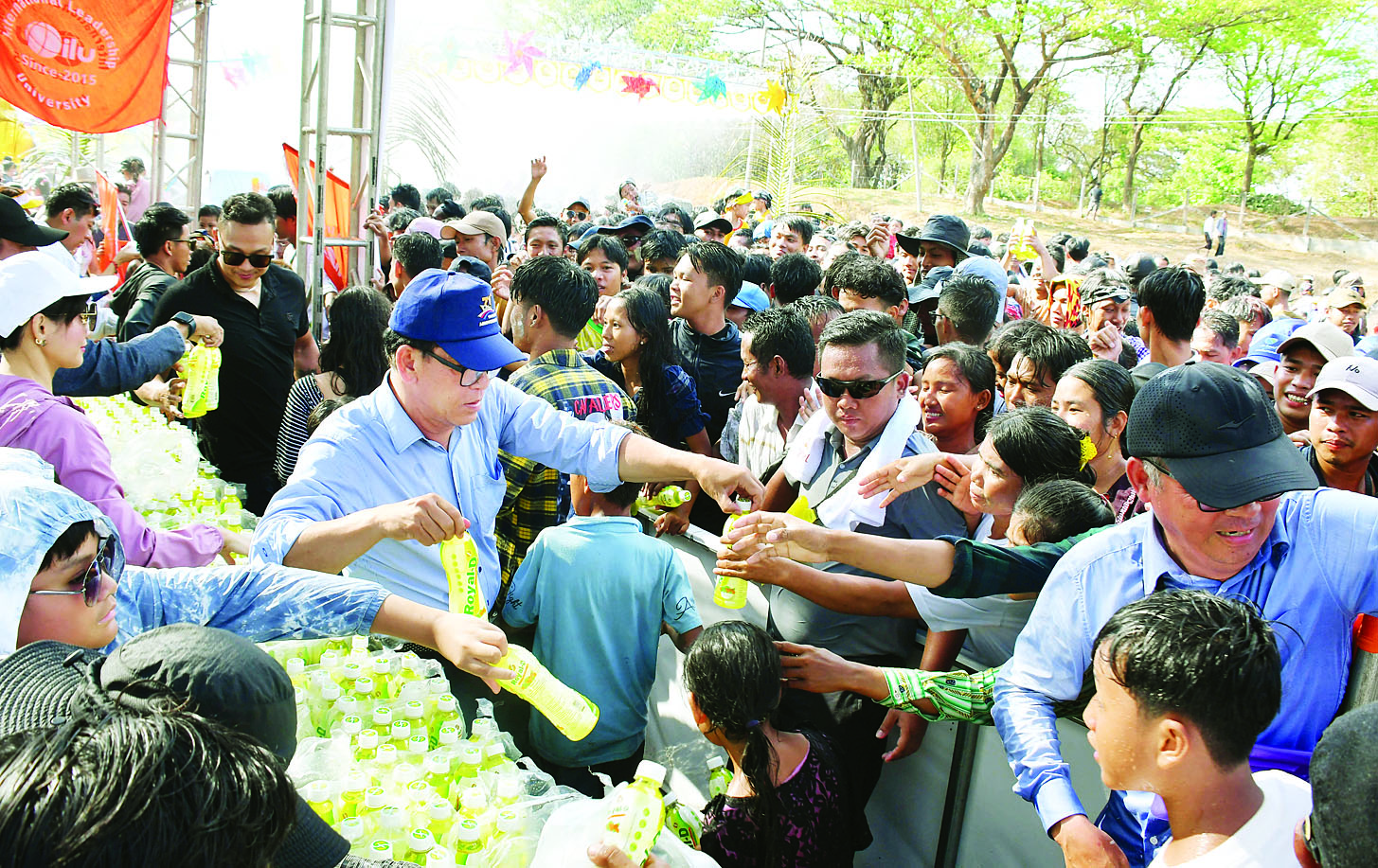 ထိုသို့ ကုသိုလ်ပြုပါဝင်လှူဒါန်းလျက်ရှိရာ ယနေ့တွင် အလှူရှင်ပြန်ကြားရေးဝန်ကြီးဌာန ပြည်ထောင်စုဝန်ကြီး ဦးမောင်မောင်အုန်းနှင့် ဇနီးမိသားစုက နေပြည်တော်လမ်းလျှောက် သင်္ကြန်ဧရိယာအတွင်း မြန်မာမှု၊ မြန်မာ့ဟန်၊ မြန်မာ့ရိုးရာယဉ်ကျေးမှု ဓလေ့စရိုက်နှင့်အညီ ပါဝင်ဆင်နွှဲကြသည့် ပြည်သူများ သုံးဆောင်နိုင်ရန်အတွက် အားဖြည့်အချိုရည်များနှင့် စတုဒိသာမုန့်မျိုးစုံကို လှူဒါန်းကြပြီး ပြည်သူများအား ရင်းနှီးနွေးထွေးစွာ တွေ့ဆုံနှုတ်ဆက်၍ နှစ်သစ်တွင် ခွန်အားဖြစ်စေမည့် မင်္ဂလာနှုတ်ခွန်းဆက်စကား အားပေးပြောကြားသည်။