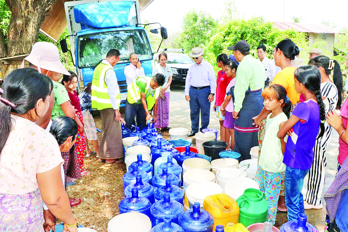 ထိုမှတစ်ဆင့် ပြည်ထောင်စုဝန်ကြီးသည် ရွှေနံ့သာရပ်ကွက်သို့ သွားရောက်ပြီး ကျေးလက်ဒေသဖွံ့ဖြိုးတိုးတက်ရေးဦးစီးဌာနက ရွေ့လျားရေသန့်စင်ကားဖြင့် အထိုင်ချကာ ငလျင်ဒဏ်သင့်ပြည်သူများအတွက် သောက်သုံးရေဖြန့်ဝေပေးနေမှုကို ကြည့်ရှုအားပေးခဲ့ကြောင်း သိရသည်။