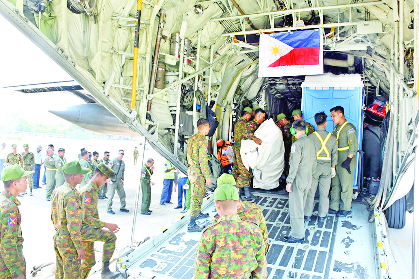 မတ် ၂၈ ရက်တွင် လှုပ်ခတ်ခဲ့သည့် မန္တလေးမြေငလျင်ကြီးကြောင့် နေပြည်တော်ကောင်စီနယ်မြေ၊ စစ်ကိုင်းတိုင်းဒေသကြီး၊ မန္တလေးတိုင်းဒေသကြီး၊ မကွေးတိုင်းဒေသကြီး၊ ရှမ်းပြည်နယ်နှင့် ပဲခူးတိုင်းဒေသကြီးတို့တွင် ပျက်စီးဆုံးရှုံးမှုများဖြစ်ပေါ်ခဲ့ရာ နိုင်ငံတော်အစိုးရအနေဖြင့် အလျင်အမြန်စုံစမ်းစစ်ဆေးခြင်း၊ ကူညီကယ်ဆယ်ရေး လုပ်ငန်းများကို အချိန်နှင့်တစ်ပြေးညီ ဆောင်ရွက်ခြင်းနှင့် ပြည်ပမှ လူသားချင်းစာနာထောက်ထားမှုဆိုင်ရာအကူအညီများကို ဖိတ်ခေါ်လမ်းဖွင့်ပေးခြင်းများ ဆောင်ရွက်ခဲ့သည်။ ငလျင်ဒဏ်သင့်ပြည်သူများထံ နိုင်ငံတကာမှ ကူညီထောက်ပံ့သည့် လူသားချင်းစာနာထောက်ထားမှုဆိုင်ရာ အကူအညီပစ္စည်းများ၊ ဆေးဝါးများသည် မတ် ၂၉ ရက် ညပိုင်းမှ စတင်၍ ရန်ကုန်အပြည်ပြည် ဆိုင်ရာလေဆိပ်၊ နေပြည်တော်အပြည်ပြည်ဆိုင်ရာလေဆိပ်၊ မန္တလေးအပြည်ပြည်ဆိုင်ရာလေဆိပ်နှင့် ရန်ကုန်သီလဝါ ဆိပ်ကမ်းတို့သို့ ရောက်ရှိလာခဲ့သည်။