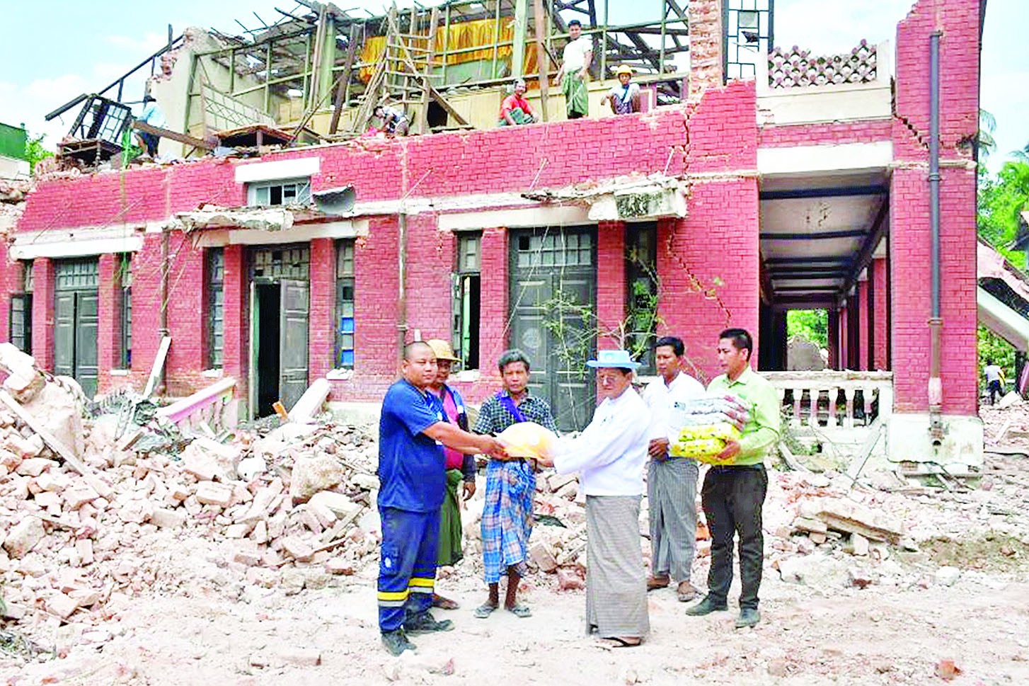 ပစ္စည်းများကို ပြည်ထောင်စုနယ်မြေနေပြည်တော်အတွင်း နေပြည်တော်ကောင်စီ၏ အစီအစဉ်ဖြင့်လည်းကောင်း၊ နေပြည်တော်ရှိ ဝန်ထမ်းမိသားစုများကို သက်ဆိုင်ရာ ဝန်ကြီးဌာနများ၏ အစီအစဉ်ဖြင့် လည်းကောင်း၊ ရန်ကုန်နှင့်နေပြည်တော်တို့မှ တစ်ဆင့်မန္တလေးတိုင်းဒေသကြီးသို့ မော်တော်ယာဉ် ၅၂ စီးဖြင့် ပေးပို့ခဲ့သည့် လှူဒါန်းပစ္စည်းများနှင့် မန္တလေး (တံတားဦး) အပြည်ပြည်ဆိုင်ရာ လေဆိပ်သို့ရောက်ရှိသည့် ပစ္စည်းများကို မန္တလေးတိုင်းဒေသကြီး အစိုးရအဖွဲ့၏ အစီအစဉ်ဖြင့်လည်းကောင်း၊ စစ်ကိုင်းတိုင်းဒေသကြီး သို့ မော်တော်ယာဉ် ၂၃ စီးဖြင့် ပေးပို့ထားသည့် လှူဒါန်းပစ္စည်းများကို စစ်ကိုင်းတိုင်းဒေသကြီးအစိုးရအဖွဲ့၏ အစီအစဉ်ဖြင့်လည်းကောင်း၊ ရှမ်းပြည်နယ် (တောင်ပိုင်း)သို့ မော်တော်ယာဉ် ခုနစ်စီးဖြင့်ပေးပို့ခဲ့သည့် လှူဒါန်း ပစ္စည်းများကို ရှမ်းပြည်နယ်အစိုးရအဖွဲ့၏ အစီအစဉ်ဖြင့်လည်းကောင်း ခွဲဝေထောက်ပံ့ဆောင် ရွက်လျက်ရှိသည်။ လှူဒါန်းရရှိသည့် ပစ္စည်းများအနက် ဆေးနှင့် ဆေးပစ္စည်းများ၊ ခွဲစိတ်ခန်းသုံး ပစ္စည်းများနှင့် ဆေးရုံသုံးပစ္စည်းများကို ကျန်းမာရေးဝန်ကြီးဌာနသို့ လွှဲပြောင်းပေးအပ်ကာ ဒဏ်ရာရရှိသည့် ပြည်သူများအားကုသရာတွင် အသုံးပြုသည်။