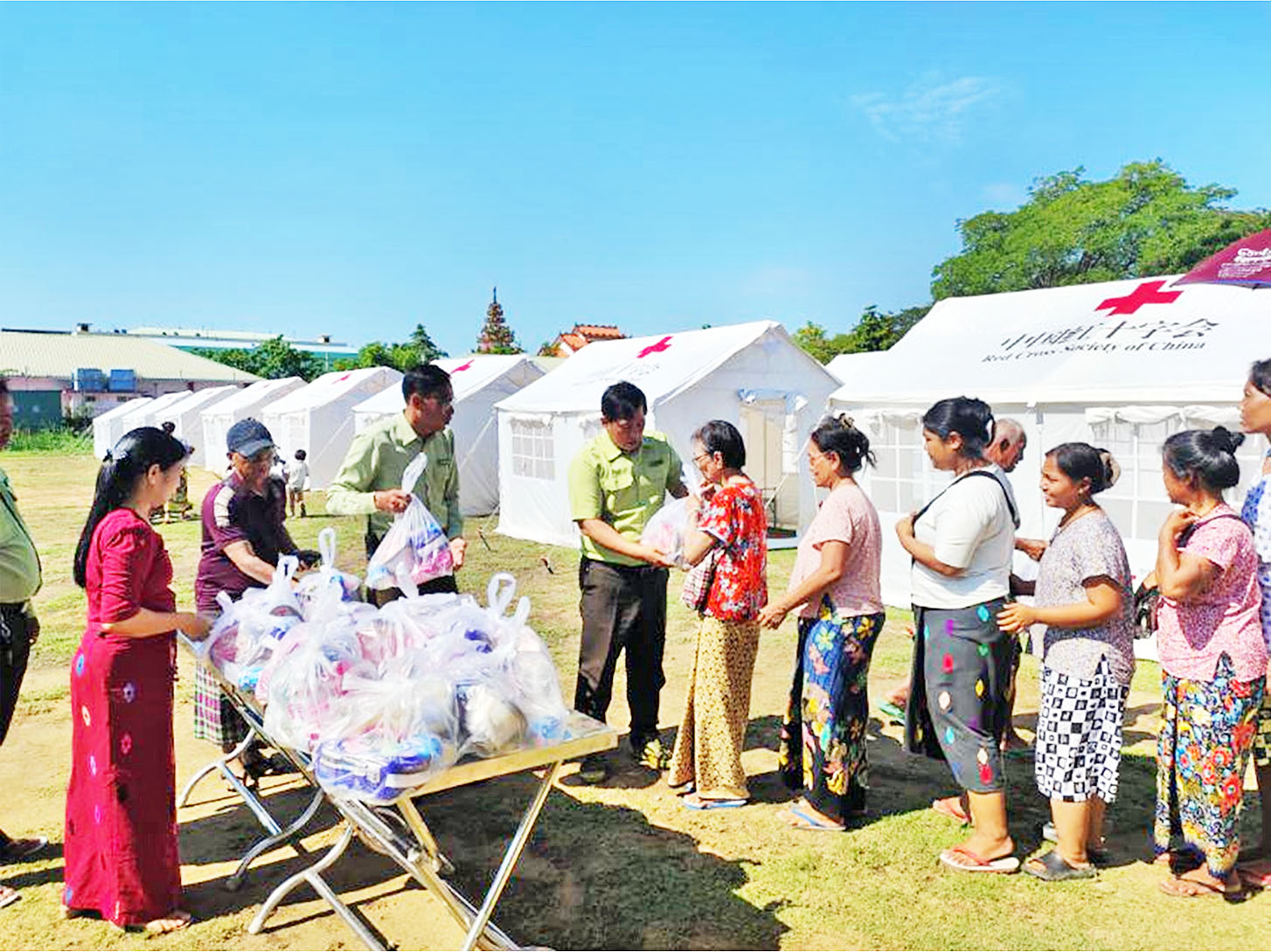 မတ် ၃၀ ရက်မှ ဧပြီ ၂၀ ရက် အထိ ငလျင်ဘေးသင့် ပြည်သူများအတွက် အိန္ဒိယနိုင်ငံ AHA Center ၊ တရုတ်ပြည်သူ့ သမ္မတနိုင်ငံ၊ ဗီယက်နမ်နိုင်ငံ၊ ဘင်္ဂလားဒေ့ရှ်နိုင်ငံ၊ ထိုင်းနိုင်ငံ၊ အင်ဒိုနီးရှား နိုင်ငံ၊ ပါကစ္စတန်နိုင်ငံ၊ ရုရှားဖက်ဒရေးရှင်းနိုင်ငံ၊ ဘယ်လာရုစ်နိုင်ငံ၊ လာအိုနိုင်ငံ၊ Singapore Red Cross Society၊ နီပေါနိုင်ငံ၊ UAE နိုင်ငံ၊ ဘရူနိုင်းနိုင်ငံနှင့်မလေးရှားနိုင်ငံတို့မှ ပေးပို့လှူဒါန်းသည့် ပစ္စည်းများကို ငလျင်ဘေးသင့်ဒေသများသို့ အချိန်မဆိုင်းဘဲ ဆက်လက်ဖြန့်ခွဲ ဆောင်ရွက်လျက်ရှိသည်။ နိုင်ငံတကာက ကူညီထောက်ပံ့သည့် ပစ္စည်းများမှာ မိုးကာတဲ၊ တာပေါ်လင်၊ Hygiene Kit ၊ Kitchen Set၊ မီးစက်၊ Sleeping Bags၊ စားသောက်ကုန်ပစ္စည်း၊ လူသုံးကုန်ပစ္စည်း၊ အိမ်သုံးကုန်ပစ္စည်း၊ လျှပ်စစ်ပစ္စည်း၊ ဆေးနှင့်ဆေးပစ္စည်း၊ ခွဲစိတ်ခန်းသုံးပစ္စည်း တို့ဖြစ်သည်။