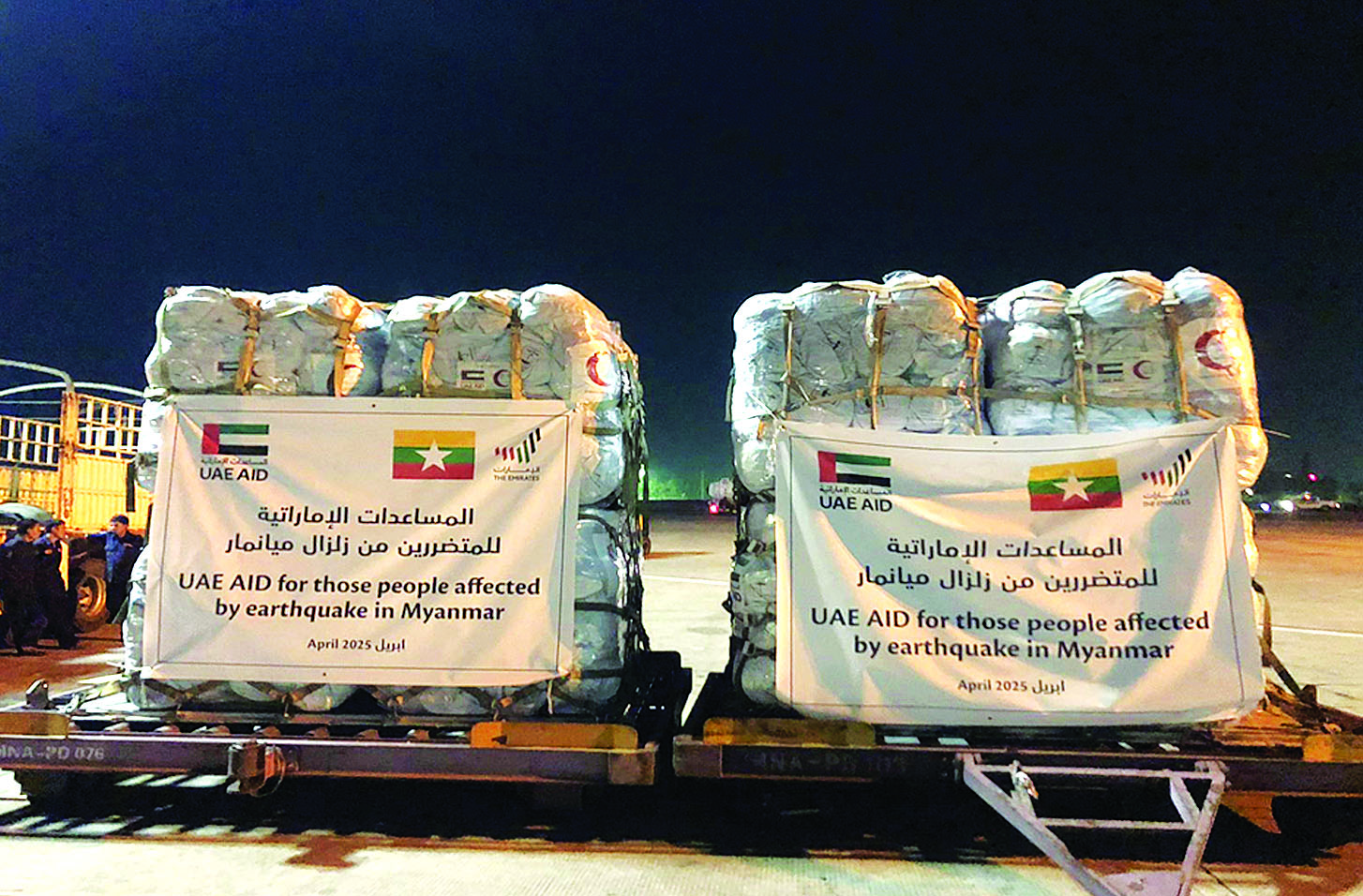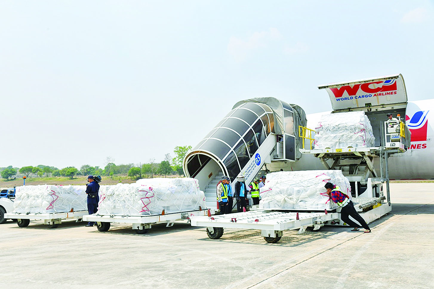 နိုင်ငံတကာမှ ကူညီထောက်ပံ့သည့် လူသားချင်းစာနာထောက်ထားမှုဆိုင်ရာ အကူအညီပစ္စည်းများနှင့် ဆေးဝါးများအား ငလျင်ဘေးဒဏ်သင့်ပြည်သူများထံ အချိန်နှင့်တစ်ပြေးညီ ဖြန့်ဝေပေးလျက်ရှိ