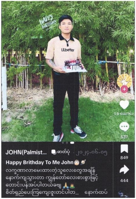 ၂၀၂၅ ခုနှစ်၊ ဧပြီလ ၂၁ ရက်တွင် မြေငလျင်ကြီးမားစွာလှုပ်ခတ်မည်ဟု Tiktok အကောင့်မှတစ်ဆင့် မဟုတ်မမှန်သတင်းအမှားဖြန့်ဝေနေကြောင်းသတင်းအရ ဧပြီလ ၂၂ ရက် ၁၀:၀၀ နာရီတွင် လုံခြုံရေးတပ်ဖွဲ့ဝင်များမှ မုံရွာမြို့၊ မြဝတီရပ်ကွက်၊ တိုးချဲ့ကွက်သစ်ရပ်၊ နယ်မြေ (၂၁)၊ ရွှေညောင်ပင်လမ်းရှိ နေအိမ်သို့သွားရောက်ရှာဖွေခဲ့ရာ တရားခံ John(Palmistry) အကောင့်ပိုင်ရှင် ဂျွန်မိုးသဲအား ဖမ်းဆီးရမိခဲ့ပါသည်။