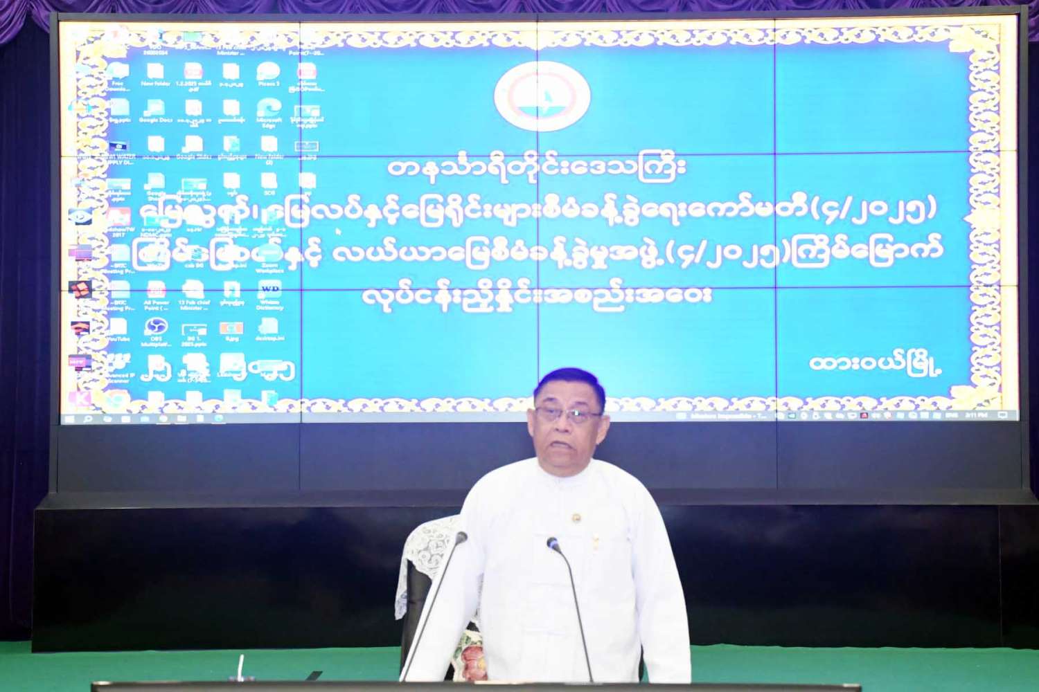 တနင်္သာရီတိုင်းဒေသကြီးမြေလွတ်၊ မြေလပ်နှင့်မြေရိုင်းများ စီမံခန့်ခွဲရေးကော်မတီ (၄/၂၀၂၅) ကြိမ်မြောက်နှင့် လယ်ယာမြေစီမံခန့်ခွဲမှုအဖွဲ့(၄ /၂၀၂၅)ကြိမ်မြောက်လုပ်ငန်း ညှိနှိုင်းအစည်းအဝေးကို ယနေ့မွန်းလွဲ ၁ နာရီ က ထားဝယ်မြို့၊ တိုင်းဒေသကြီးအစိုးရအဖွဲ့ရုံး၊ အစည်းအဝေးခန်းမ၌ ကျင်းပသည်။