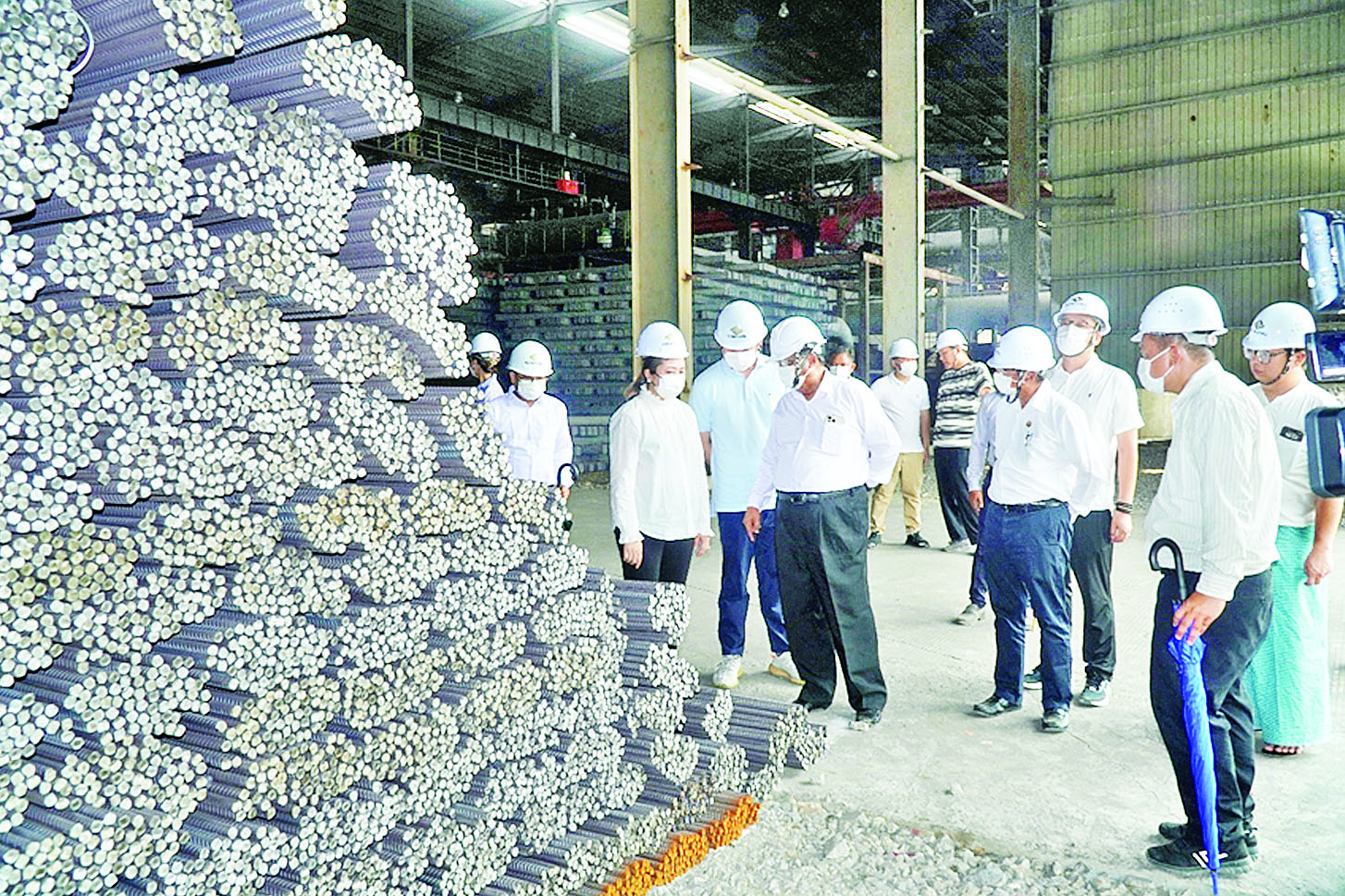 ထို့ပြင် ပြည်ထောင်စုဝန်ကြီးသည် ပုဂ္ဂလိကမှ ဆောင်ရွက်လျက်ရှိသည့် စဉ့်ကိုင်မြို့နယ်ရှိ မြန်မာမန္တလေး ဖူရှင်းစတီးလ်စက်ရုံသို့ သွားရောက်ကြည့်ရှုစစ်ဆေးပြီး စက်ရုံအနေဖြင့် ထုတ်ကုန်ပစ္စည်းများ အရည်အသွေးစံချိန်စံညွှန်း ပြည့်မီစေရေးအတွက် စက်ရုံရှိ ဓာတ်ခွဲခန်းတွင် စမ်းသပ်စစ်ဆေးသည့်အပြင် နိုင်ငံတကာအသိအမှတ်ပြု ဓာတ်ခွဲခန်းများတွင်လည်း စမ်းသပ်စစ်ဆေး၍ အသိအမှတ်ပြု လက်မှတ်ရရှိအောင် ဆောင်ရွက်ထားရမည်ဖြစ်ကြောင်း၊ သို့မှသာ စက်ရုံမှထုတ်လုပ်သည့် ကုန်ပစ္စည်းများကို သုံးစွဲသူပြည်သူများက ယုံကြည်စိတ်ချစွာ အသုံးပြုလာမည်ဖြစ်ကြောင်း၊ သံ၊ သံမဏိများကို အရည်အသွေးကောင်းမွန်စေရန်၊ စံချိန်စံညွှန်းများနှင့် ကိုက်ညီမှုရှိ၊ မရှိ စမ်းသပ်စစ်ဆေးမှုများနှင့်ပတ်သက်၍ နည်းပညာများကို မျှဝေပေးရမည်ဖြစ်ကြောင်း၊ သံနှင့် သံမဏိထုတ်ကုန်များ အရည်အသွေးကောင်းမွန်လျှင် မြေငလျင်ကဲ့သို့သော သဘာဝဘေးအန္တရာယ်ဖြစ်ပေါ်ပါက သုံးစွဲသူပြည်သူများ ထိခိုက်ပျက်စီးမှု၊ ဘေးအန္တရာယ်ဖြစ်ပွားမှုလျော့နည်းမည်ဖြစ်၍ အလေးထားဆောင်ရွက်ရမည်ဖြစ်ကြောင်း မှာကြားကာ သံမဏိချောင်း အရွယ်အစားမျိုးစုံထုတ်လုပ်နေသည့် လုပ်ငန်းစဉ်အဆင့်ဆင့်တို့ကို လှည့်လည်ကြည့်ရှုစစ်ဆေးခဲ့ကြောင်း သတင်းရရှိသည်။