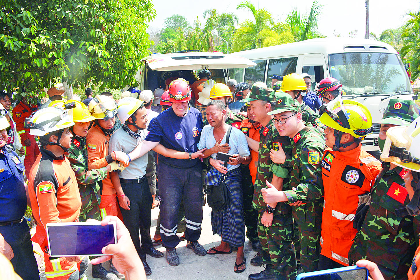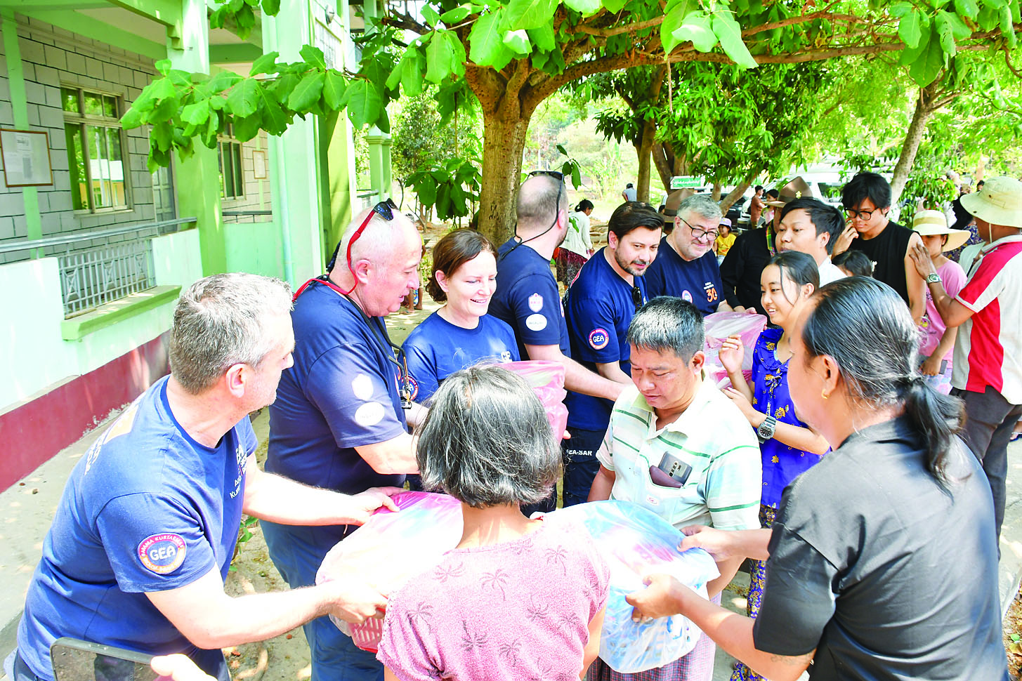 မြန်မာနိုင်ငံအတွင်းရှိ ငလျင်ဘေးဒဏ်သင့်ဒေသများသို့ ကူညီကယ်ဆယ်ရေးလုပ်ငန်းများ ဆောင်ရွက်ပေးရန်အတွက် ရုရှား၊ တရုတ်၊ အိန္ဒိယ၊ ထိုင်း၊ စင်ကာပူ၊ မလေးရှား၊ ဘင်္ဂလား ဒေ့ရှ်၊ ဗီယက်နမ်၊ ယူအေအီး၊ လာအို၊ ဘယ်လာရုစ်၊ အင်ဒိုနီးရှား၊ ဘူတန်၊ ဖိလစ်ပိုင်၊ ဂျပန်၊ နီပေါ၊ ပါကစ္စတန်၊ တူကီယဲ၊ အမေရိကန်၊ သီရိလင်္ကာ၊ ဩစတြေးလျ၊ အဇာဘိုင်ဂျန်၊ ဘရူနိုင်း၊ တောင်ကိုရီးယား၊ ဂျာမနီနှင့် ကမ္ဘောဒီးယားစသည့် နိုင်ငံပေါင်း ၂၆ နိုင်ငံတို့မှ လူသားချင်းစာနာထောက်ထားမှု အကူ အညီပစ္စည်းများ ထောက်ပံ့ပေးခြင်း၊ ရှာဖွေကယ်ဆယ်ရေး လုပ်ငန်းများ ဆောင်ရွက်ရန်အတွက် ရုရှား၊ တရုတ်၊ အိန္ဒိယ၊ ထိုင်း၊ စင်ကာပူ၊ မလေးရှား၊ ဘင်္ဂလားဒေ့ရှ်၊ ဗီယက်နမ်၊ ယူအေအီး၊ ဘယ်လာရုစ်၊ အင်ဒိုနီးရှား၊ ဖိလစ်ပိုင်နှင့် တူကီယဲစသည့် နိုင်ငံ ၁၃ နိုင်ငံတို့မှ ဆေးအကာအကွယ်အဖွဲ့များ ပူးတွဲပါဝင်သည့် ရှာဖွေကယ်ဆယ်ရေးအဖွဲ့ ၁၆ ဖွဲ့ လူဦးရေ ၁၀၇၀ နှင့် ရှာဖွေကယ်ဆယ်ရေး ခွေး ၃၈ ကောင်တို့ဖြင့် ပြည်တွင်းရှိ အဖွဲ့အစည်းများနှင့် ပူးပေါင်းကာ မြေပြင်ကွင်းဆင်း၍ ငလျင် ဒဏ်ကြောင့် ပြိုကျပျက်စီးခဲ့သည့် အဆောက်အဦများအတွင်းသို့ ရောက်ရှိပိတ်မိနေကြသည့် ပြည်သူများအား နိုင်ငံအလိုက် ရှာဖွေကယ်ဆယ်ရေးလုပ်ငန်းများကို သက်စွန့်ကြိုးပမ်းဆောင်ရွက်ခဲ့ကြပြီး ကယ်ဆယ်ရှာဖွေတွေ့ရှိခဲ့သည့် လူနာများအား လိုအပ်သည့် ကျန်းမာရေးစောင့်ရှောက်မှုလုပ်ငန်းများကိုလည်း ကယ်ဆယ်သည့်နေရာတွင်ပင် အမြန်ဆုံးဆောင်ရွက်ပေးနိုင်ခဲ့ပါသည်။