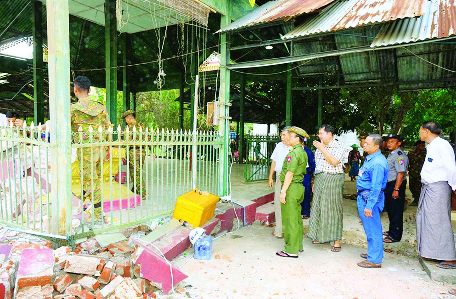 ထို့နောက် အရှေ့ဘက်စောင်းတန်းရှိ ဓာတ်တော်တိုက်နေရာ၊ မြတ်စောညီနောင်ဘုရားနှင့် ရသေ့ကြီးဦးခန္တီသီတင်းသုံးသော မဏ္ဍပ်နေရာ၊ နှစ်ကျိပ်ရှစ်ဆူဘုရား၊ ဗျာဒိတ်ပေးရုပ်ပွားတော်မြတ်ကြီး နေရာများသို့သွားရောက်၍ အပျက်အစီးများ ဖယ်ရှားရှင်းလင်းရေးနှင့် ပြန်လည်ပြုပြင်တည်ဆောက်ရေးလုပ်ငန်းများ အမြန်ဆုံးဆောင်ရွက်သွားရန် မှာကြားပြီး လိုအပ်သည်များ ပေါင်းစပ်ညှိနှိုင်း ဆောင်ရွက်ပေးသည်။