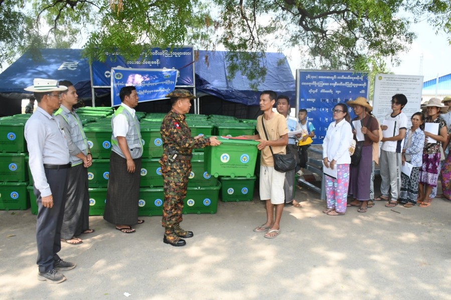အလားတူ ကာကွယ်ရေးဦးစီးချုပ်ရုံး(ကြည်း)မှ ဒုတိယဗိုလ်ချုပ်ကြီး မျိုးသန့်နိုင်နှင့် တာဝန်ရှိသူများသည် ကျောက်ဆည်မြို့၊ မင်းရပ်ရပ်ကွက်ရှိ ဆင်ဖြူတော်ဝပ်ကျောင်းတိုက်၌ စုကြီးရပ်ကွက်အန္တရာယ်ရှိ နယ်မြေမှ ပြောင်းရွှေ့သီတင်းသုံးနေတော်မူနေသော သံဃာတော်များအား ဆွမ်းဆန်တော်နှင့် လှူဖွယ်ပစ္စည်းများ ဆက်ကပ်လှူဒါန်းပြီး အများပြည်သူအန္တရာယ်ကင်းရှင်းရေးအတွက် နိုင်ငံတော်အဆင့် ပြင်ဆင်မွမ်းမံနိုင်ရေး ဆောင်ရွက်လျက်ရှိကြောင်း လျှောက်ထားပြီး တာဝန်ရှိသူများ၏ တင်ပြချက်များအပေါ် လိုအပ်သည်များ ပေါင်းစပ်ညှိနှိုင်းဆောင်ရွက်ပေးသည်။