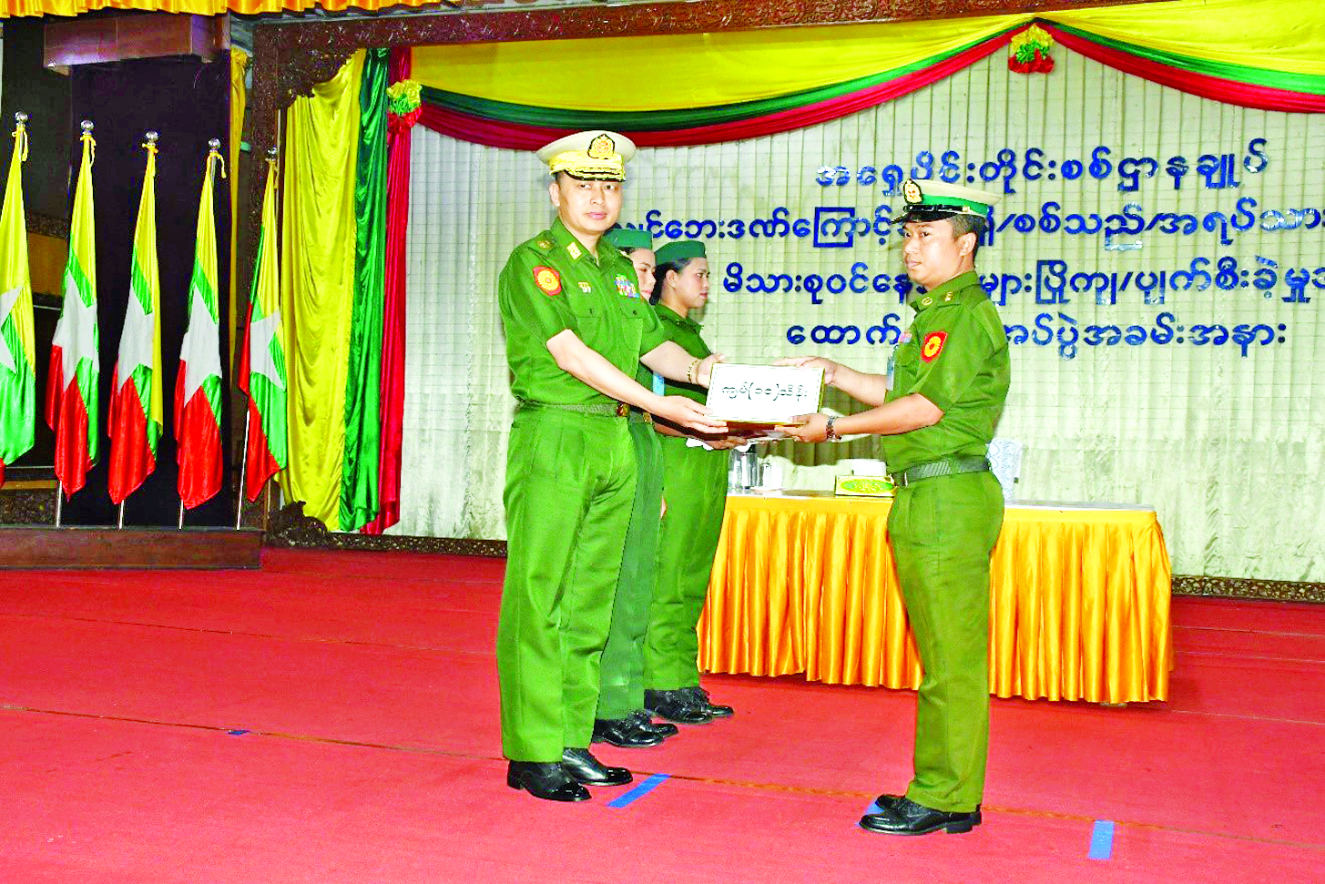 အရှေ့ပိုင်းတိုင်းစစ်ဌာနချုပ်တွင် မြေငလျင်ဒဏ်ကြောင့် မိသားစုဝင်နေအိမ်များ ပြိုကျပျက်စီးခဲ့သည့် အရာရှိ၊ စစ်သည်၊ အရပ်သားဝန်ထမ်းများအား ထောက်ပံ့ငွေပေးအပ်ပွဲကို ယနေ့နံနက်ပိုင်းတွင် တိုင်းစစ်ဌာနချုပ် သံလွင်ခန်းမ၌ ပြုလုပ်ရာ တိုင်းမှူး ဗိုလ်ချုပ် ဇော်မင်းလတ်နှင့် အဖွဲ့ဝင်များ၊ အရာရှိ၊ စစ်သည်၊ အရပ်သားဝန်ထမ်းများ တက်ရောက်ကြသည်။