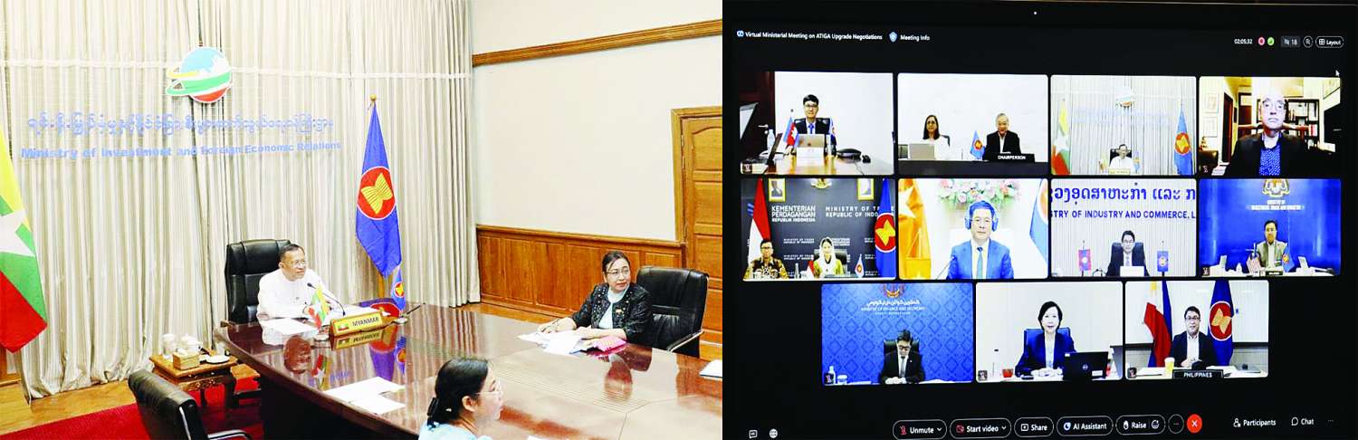 မြန်မာနိုင်ငံ၏ အာဆီယံလွတ်လပ်သောကုန်သွယ်မှုဒေသကောင်စီဝန်ကြီးဖြစ်သူ ရင်းနှီးမြှုပ်နှံမှုနှင့် နိုင်ငံခြားစီးပွားဆက်သွယ်ရေးဝန်ကြီးဌာန ပြည်ထောင်စုဝန်ကြီး ဒေါက်တာကံဇော်သည် အာဆီယံကုန်စည်ကုန်သွယ်ရေးသဘောတူစာချုပ် အဆင့်မြှင့်တင်ခြင်းဆိုင်ရာ စေ့စပ်ညှိနှိုင်းမှုများနှင့်စပ်လျဉ်းသည့် ဒုတိယအကြိမ် ဝန်ကြီးအဆင့်အစည်းအဝေးသို့ ယနေ့နံနက်ပိုင်းတွင် ဗီဒီယိုကွန်ဖရင့်စနစ်ဖြင့် ပါဝင်တက်ရောက်သည်။