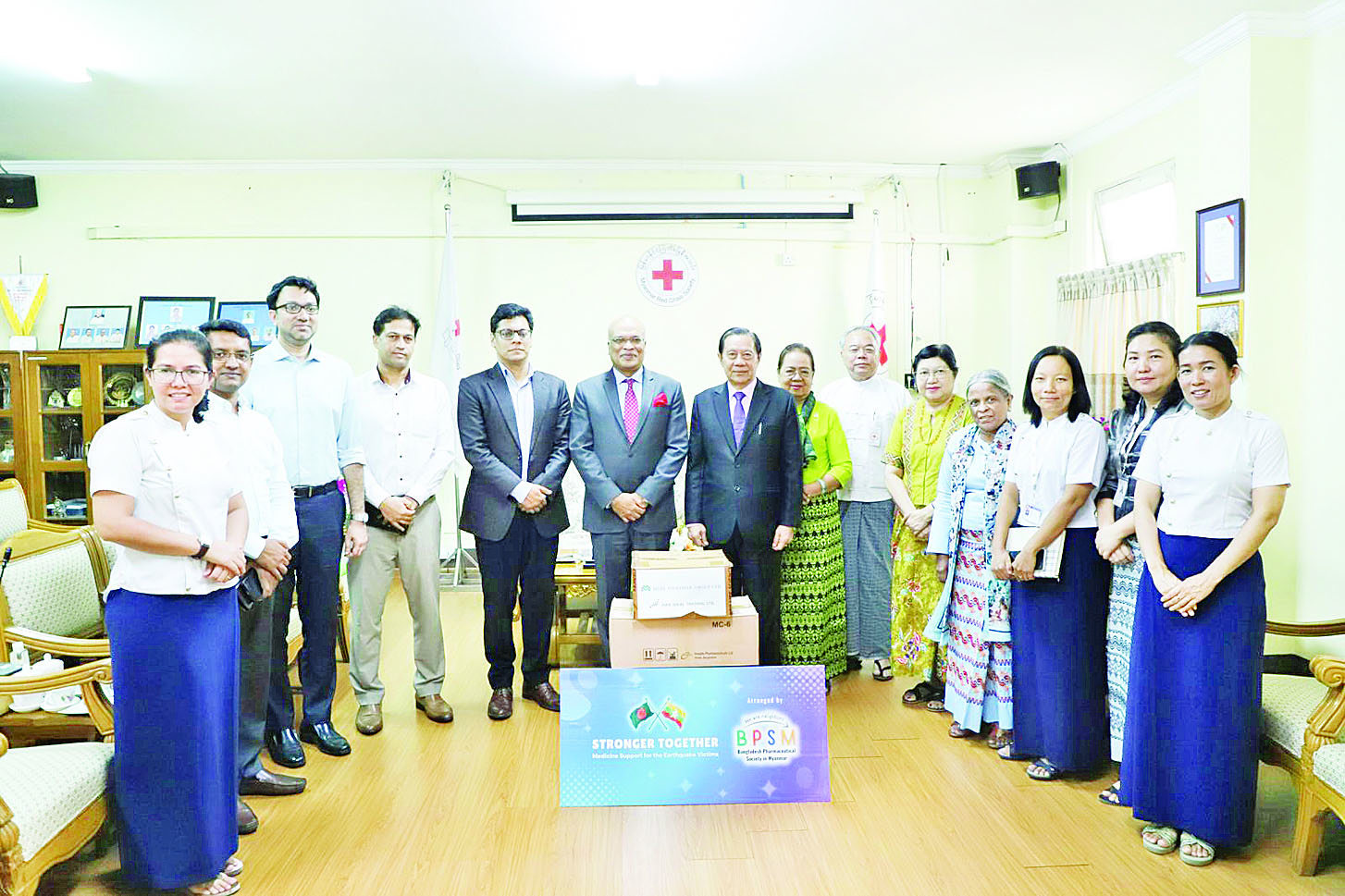 မြန်မာနိုင်ငံကြက်ခြေနီအသင်းမှ ဆောင်ရွက်လျက်ရှိသော ငလျင်တုံ့ပြန်ဆောင်ရွက်ရေးလုပ်ငန်းများတွင် အသုံးပြုရန်အတွက် Bangladesh Pharmaceutical Society in Myanmar မှ ဆေးဝါးများ လှူဒါန်းပွဲကို ယနေ့တွင် အသင်းရန်ကုန်ရုံးခွဲ၌ ကျင်းပသည်။
