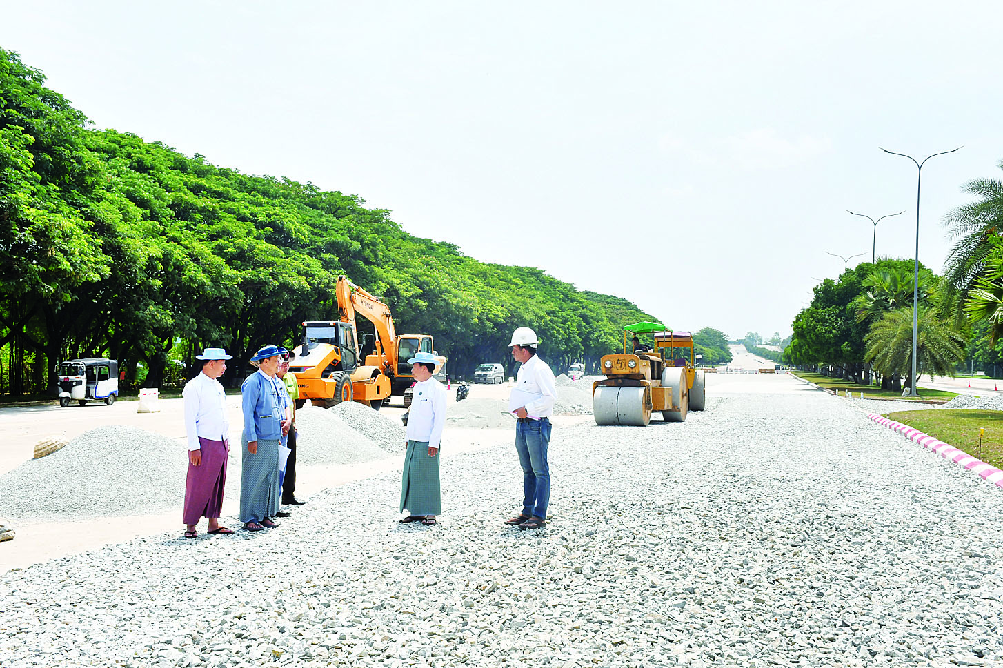 ဆက်လက်၍ နေပြည်တော်ကောင်စီဥက္ကဋ္ဌသည် တာဝန်ရှိသူများနှင့်အတူ ငလျင်ဘေးဒဏ်ကြောင့် ထိခိုက်ပျက်စီးခဲ့သည့် ရာဇဌာနီလမ်းမကြီး၊ ရာဇသင်္ဂဟလမ်းမကြီးနှင့် တော်ဝင်ရတနာလမ်းမကြီးများ ပြန်လည်ပြုပြင်ဆောင်ရွက်နေမှုနှင့် ရာဇသင်္ဂဟလမ်းသပြေကုန်းအဝိုင်းအနီး မြေထိန်းနံရံထိခိုက်ပျက်စီးမှုများကို ကြည့်ရှုစစ်ဆေးပြီး ရေရှည်တည်တံ့ခိုင်မြဲအောင် ပြုပြင်ဆောင်ရွက်ရေး၊ စံချိန်စံညွှန်းနှင့်အညီ ဖြစ်စေရေးအတွက် တာဝန်ရှိသူများက အနီးကပ်ကြီးကြပ်ဆောင်ရွက်ရေး၊ လမ်းခင်းကျောက်များ အသုံးပြုရာတွင် သတ်မှတ်နည်းပညာနှင့်အညီ စနစ်တကျဆောင်ရွက်ရေးလုပ်ငန်းခွင်အတွင်း တာဝန်ရှိသူများက အချိန်ပြည့်ကြပ်မတ်ဆောင်ရွက်ရေးနှင့် အပိုင်းလိုက် အမြန်ဆုံးပြီးစီးအောင်ဆောင်ရွက်ရေးတို့ကို မှာကြားခဲ့ကြောင်း သိရသည်။