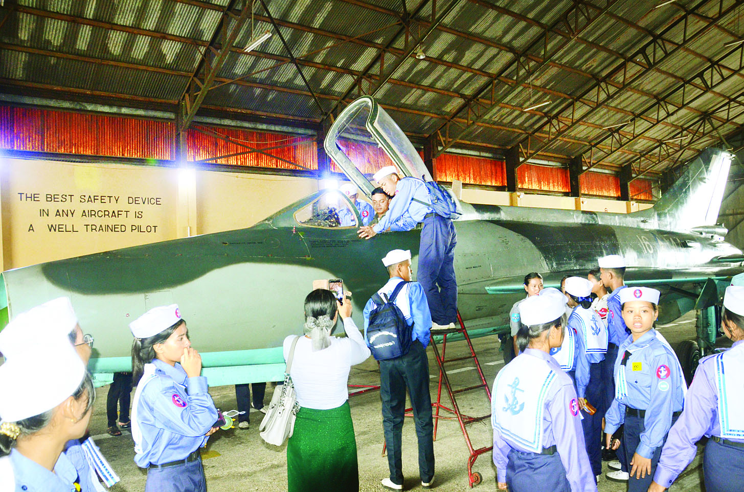 ရန်ကုန်မြို့သို့ရောက်ရှိနေသည့် ရေကြောင်းလူငယ်အခြေခံနှင့် တန်းမြင့်သင်တန်း အမှတ်စဉ် (၁/၂၀၂၅) စခန်းပေါင်းစုံမှ သင်တန်းသားသင်တန်းသူများသည် သင်တန်းနည်းပြများ၊ အုပ်ချုပ်သူများ၊ တာဝန်ရှိသူများနှင့်အတူ ယနေ့နံနက်ပိုင်းတွင် မင်္ဂလာဒုံလေတပ် စခန်းဌာနချုပ်သို့ လေ့လာရေးခရီးသွားရောက်ကြသည်။ ဦးစွာ လေကြောင်းနှင့်အာကာသသိပ္ပံပညာရပ်များ၊ လေယာဉ်ပျံသန်းမှုနှင့် သက်ဆိုင်သော အထွေထွေဗဟုသုတများ၊ တပ်မတော် (လေ) တွင် အသုံးပြုလျက်ရှိသော လေယာဉ်များအကြောင်းကို တပ်မတော် (လေ) မှ တာဝန်ရှိသူများက လိုက်လံရှင်းလင်းပြသသည်။
